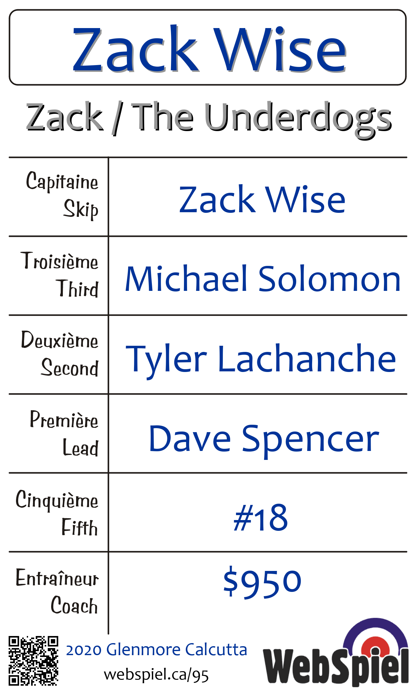 | Club | Zack / The Underdogs Glenmore Curling Club 120 rue Glenmore Dollard-des-Ormeaux, QC H9B 2X9 CANADA T: 514-684-6350 F: 514-684-6352 http://www.glenmorecurling.com 4 glaces |