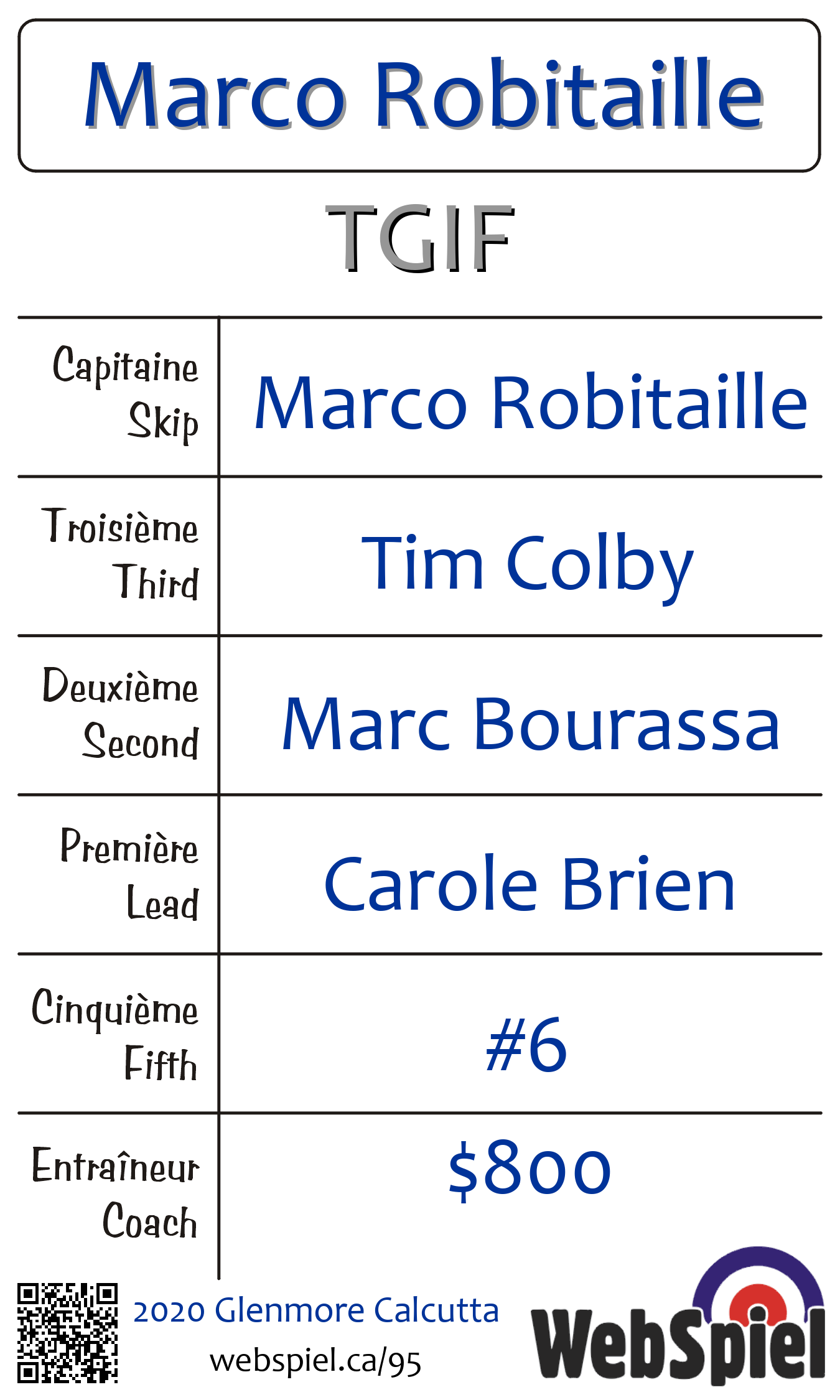 | Club | TGIF Glenmore Curling Club 120 rue Glenmore Dollard-des-Ormeaux, QC H9B 2X9 CANADA T: 514-684-6350 F: 514-684-6352 http://www.glenmorecurling.com 4 glaces |