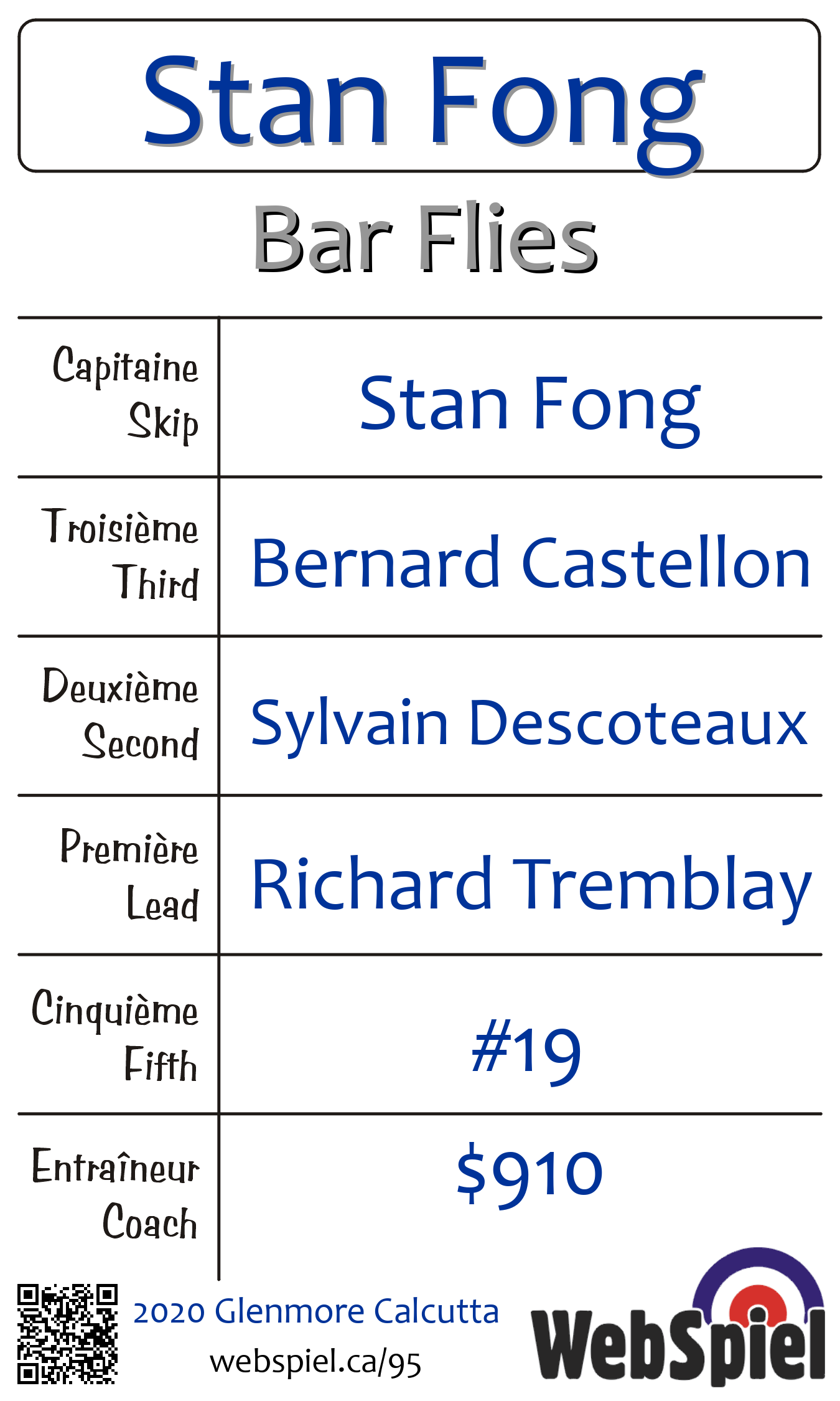 | Équipe | 11 - Stan Fong |