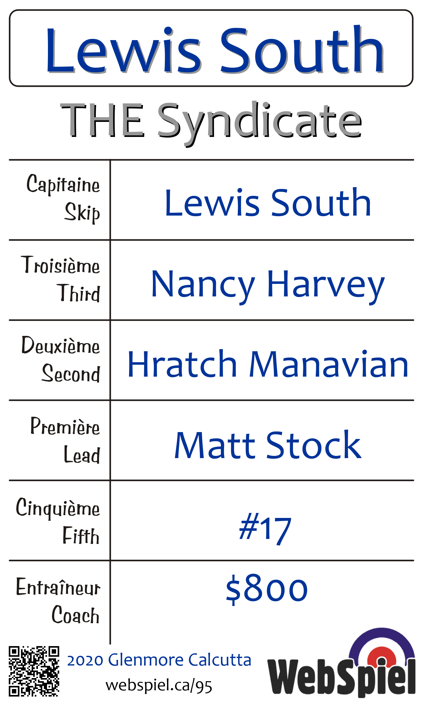 Complété. 2020 Glenmore Calcutta · Draw D03