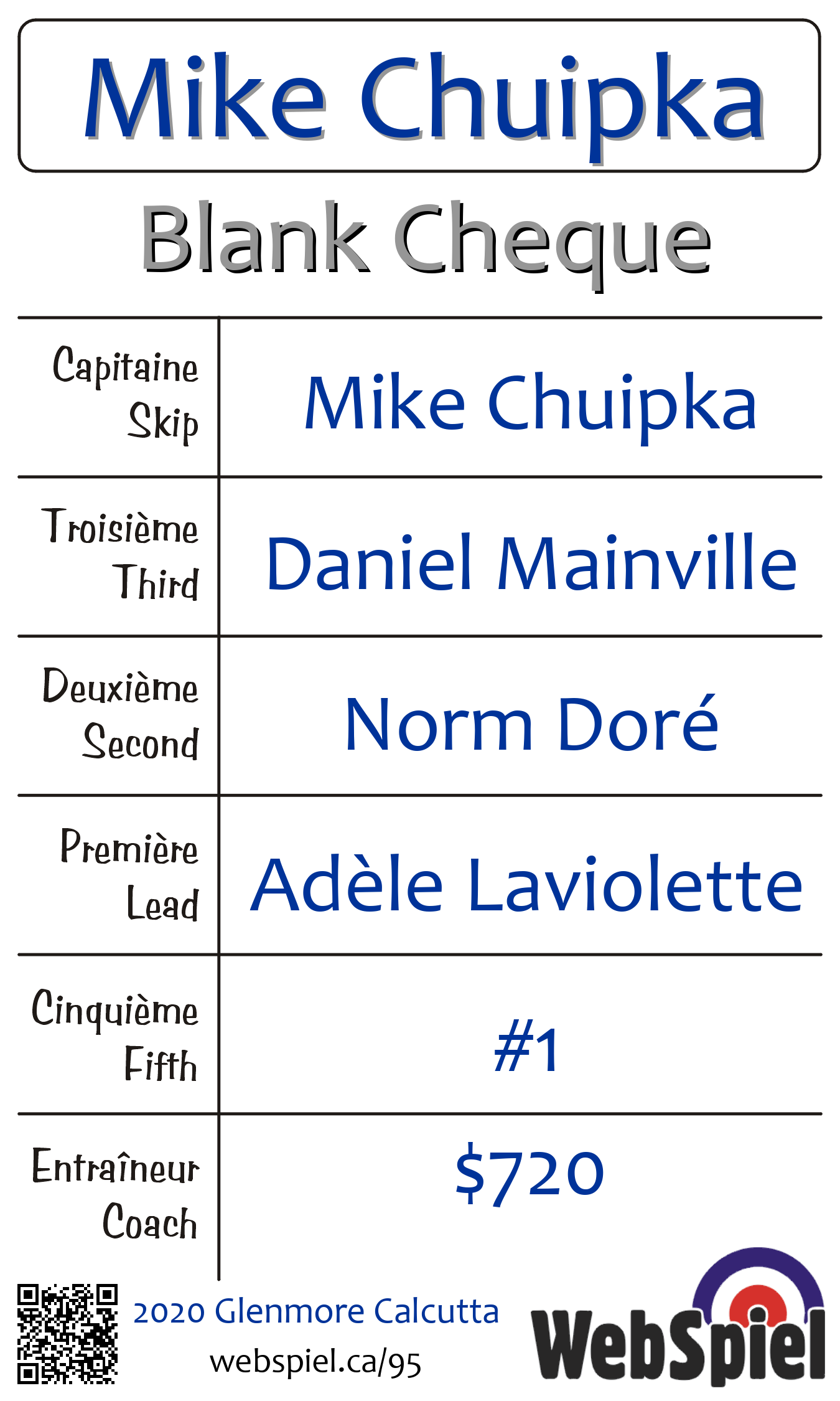 | Club | Blank Cheque Glenmore Curling Club 120 rue Glenmore Dollard-des-Ormeaux, QC H9B 2X9 CANADA T: 514-684-6350 F: 514-684-6352 http://www.glenmorecurling.com 4 glaces |