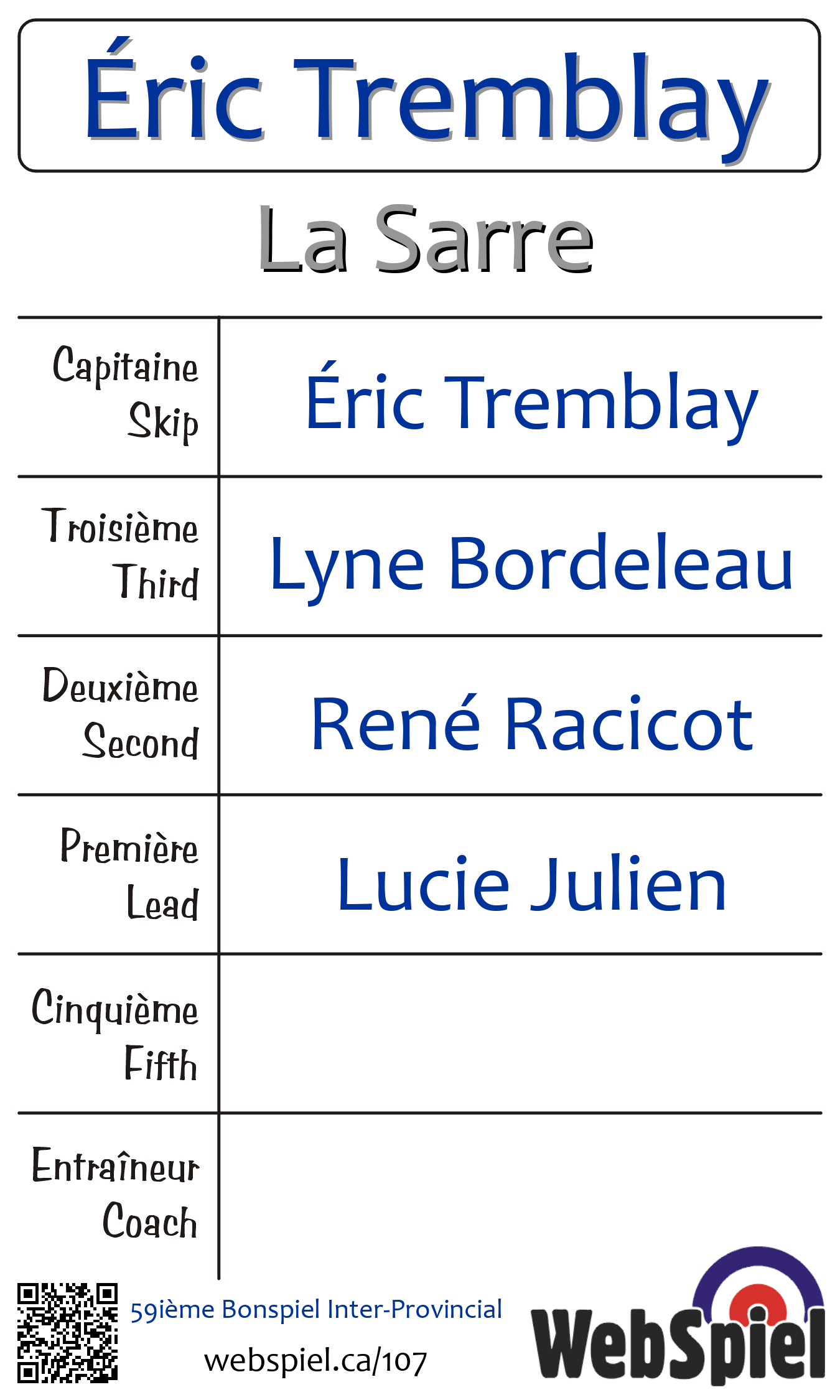 Saturday, April 30th, 2022, at 9:00am EDT Club de curling d'Amos, Sheet 3 · C, Winner › B26, Loser › C02 | |||||||||