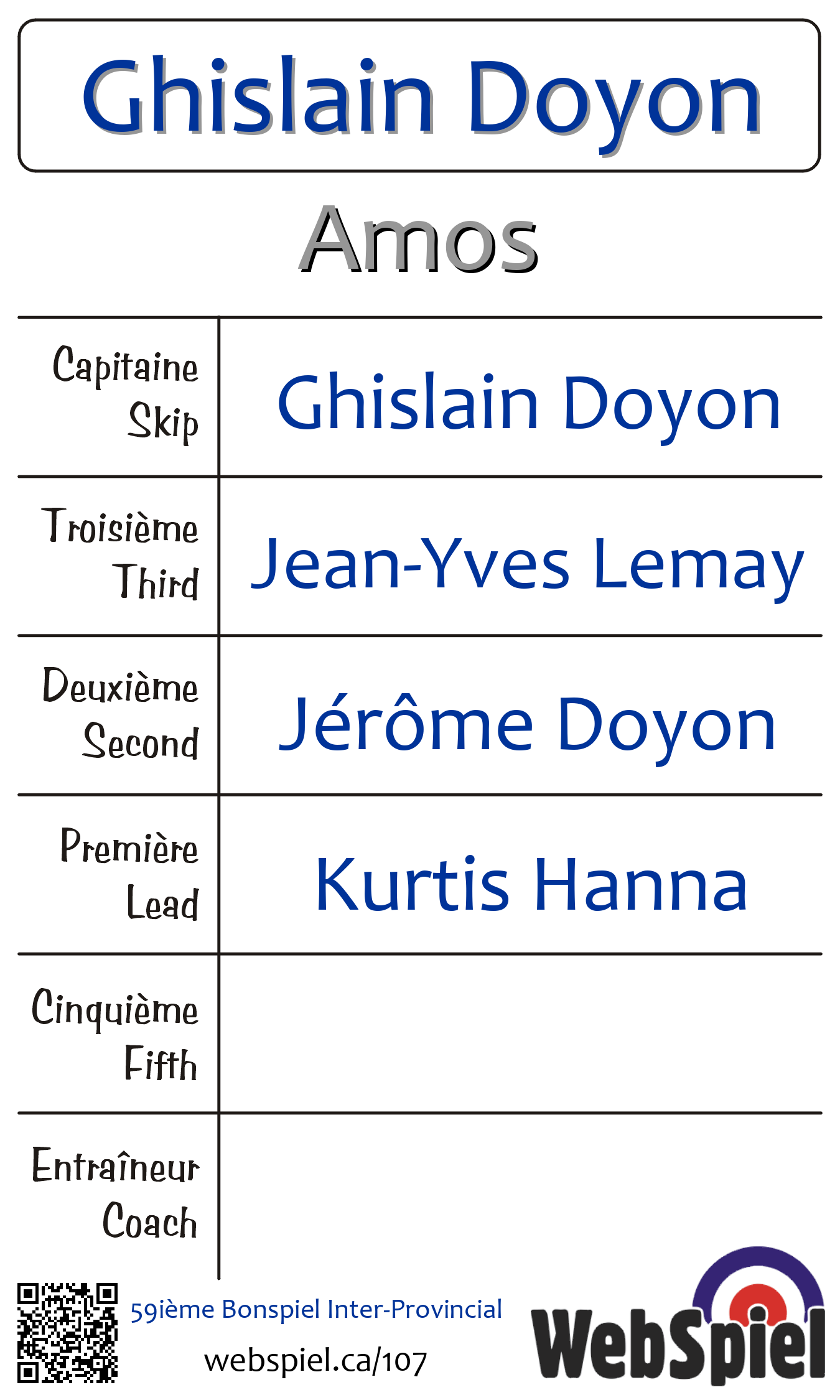| Club | Amos Club de curling d'Amos 182 10e Avenue Est Amos, QC J9T 1H9 CANADA T: 819-732-6272 F: 819-732-1617 http://www.clubcurlingamos.com |