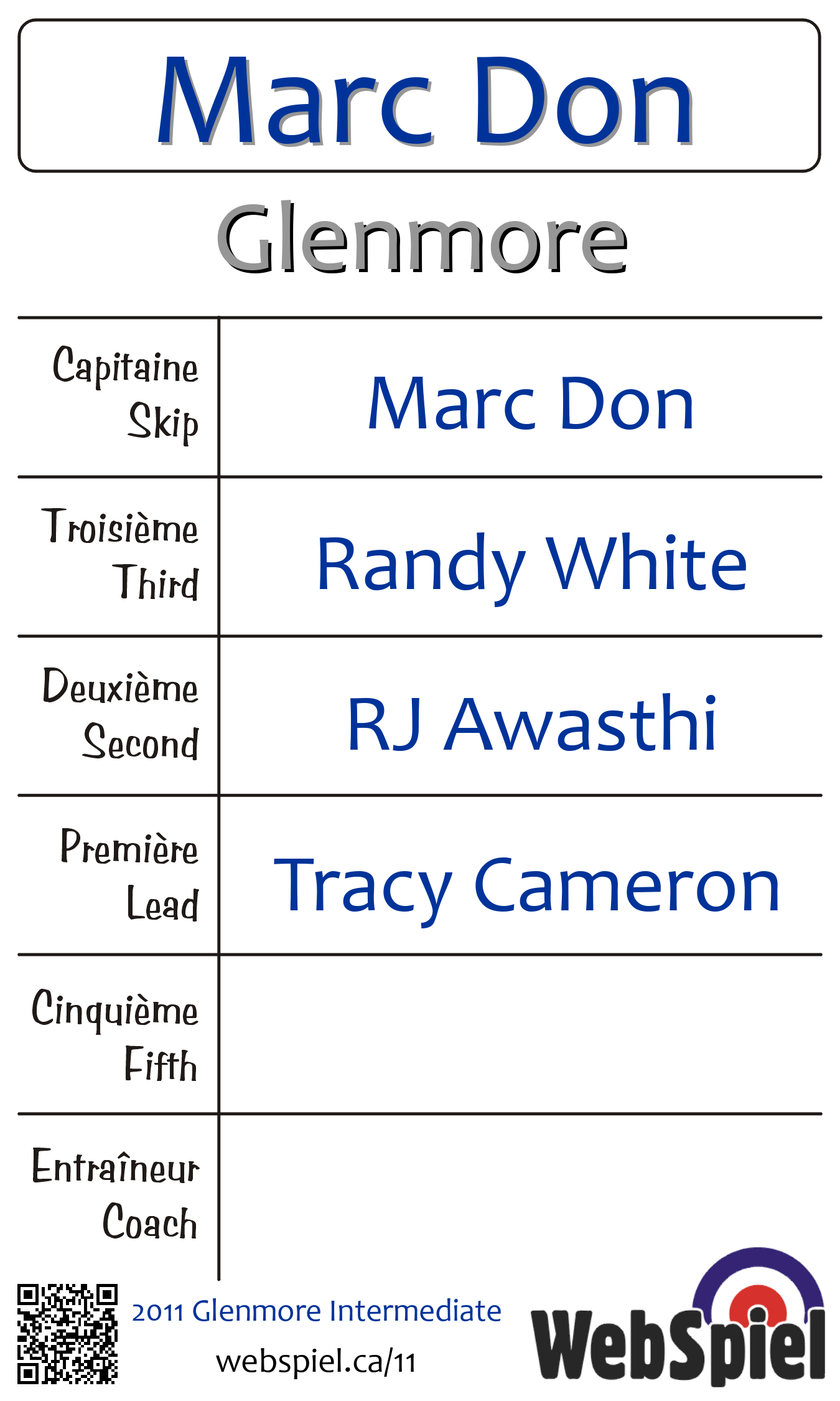 Saturday, April 23rd, 2011, at 4:30pm EDT Glenmore Curling Club, Sheet 214, Winner › A30, Loser › OUT | |||||||||
