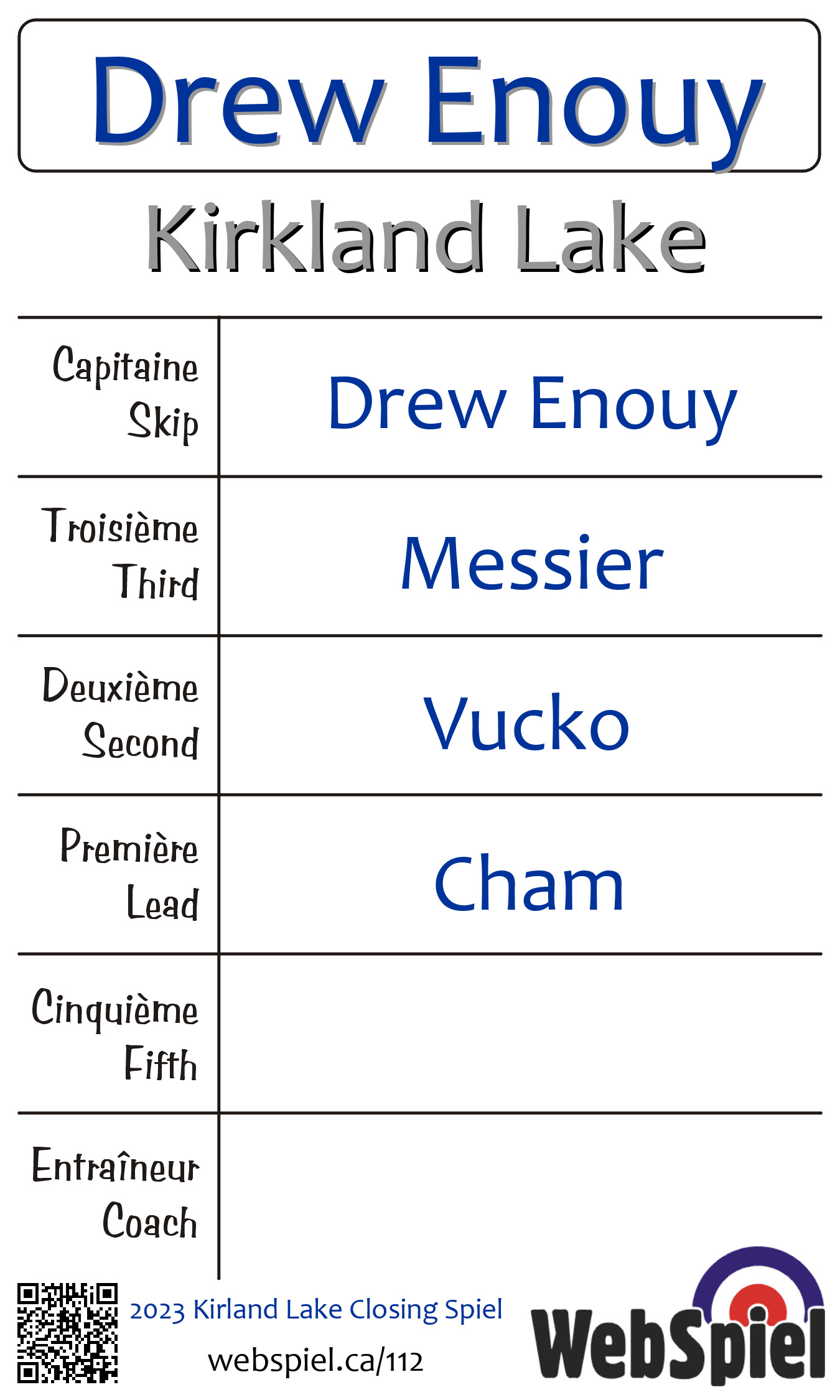 C FinalSunday, April 16th, 2023, at 1:00pm EDT Kirkland Lake Curling Club, Sheet 2 | |||||||||