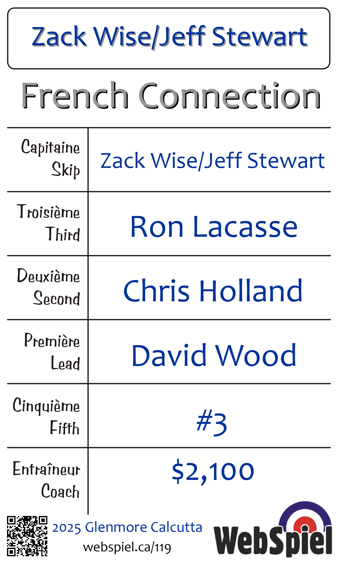 | Skip | Zack Wise/Jeff Stewart |