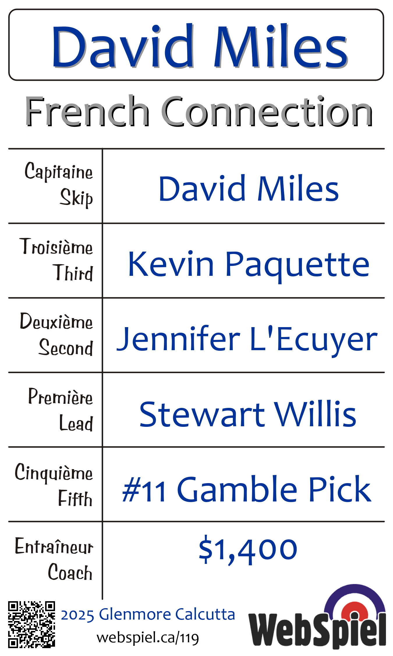 Thursday, February 6th, 2025, at 9:00pm EST Glenmore Curling Club, Sheet 211 · A, Winner › D06, Loser › OUT | |||||||||