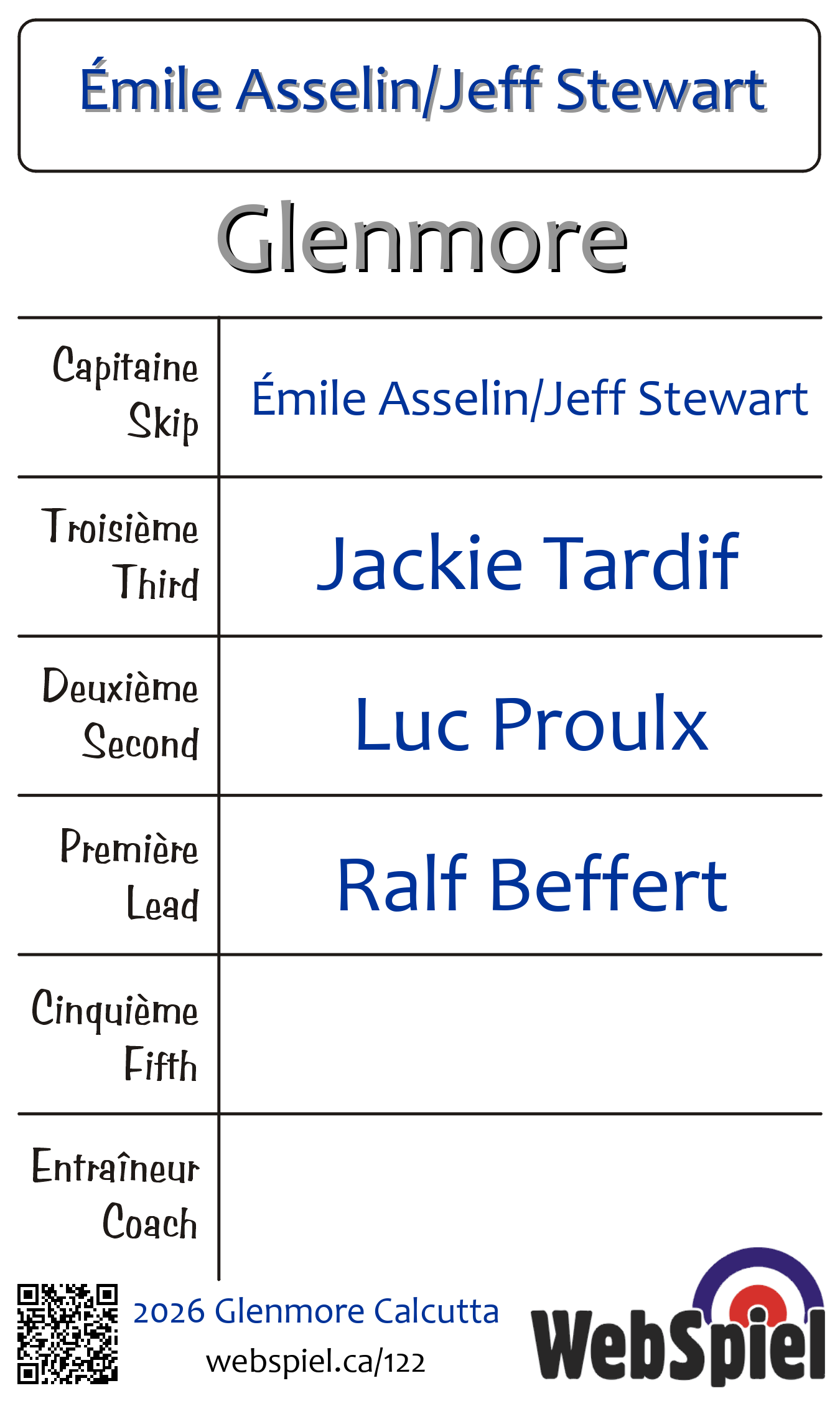 | Skip | Émile Asselin/Jeff Stewart |