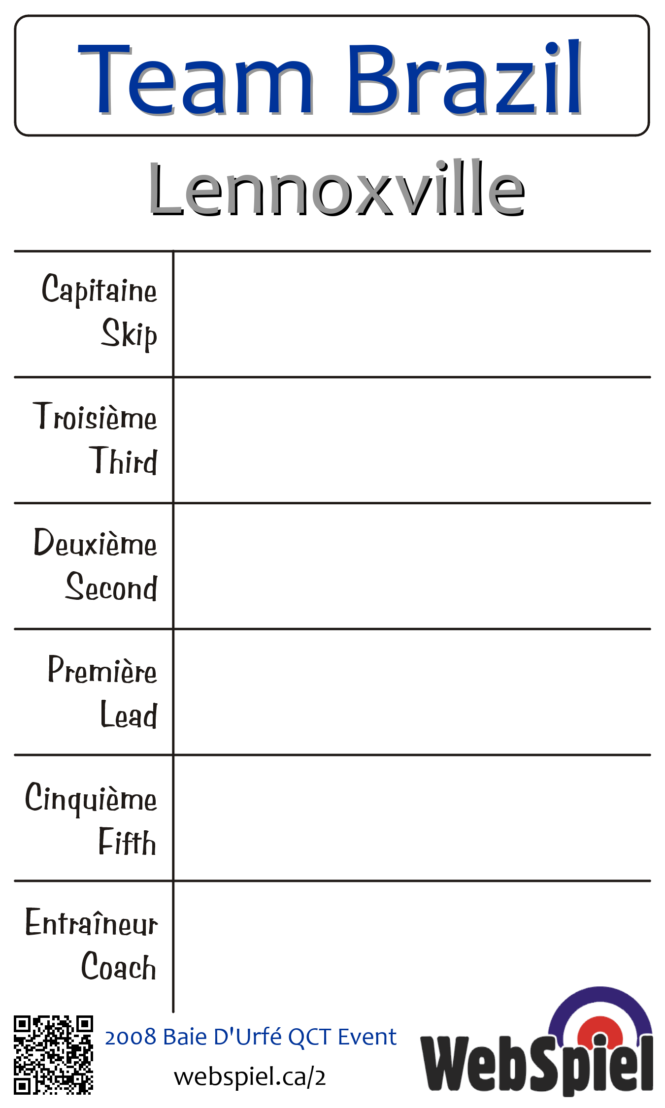 | Club | Lennoxville Club de curling Lennoxville 6 rue Speid Lennoxville, QC J1M 1R6 CANADA T: 819-562-2310 http://www.lennoxvillecurling.ca |