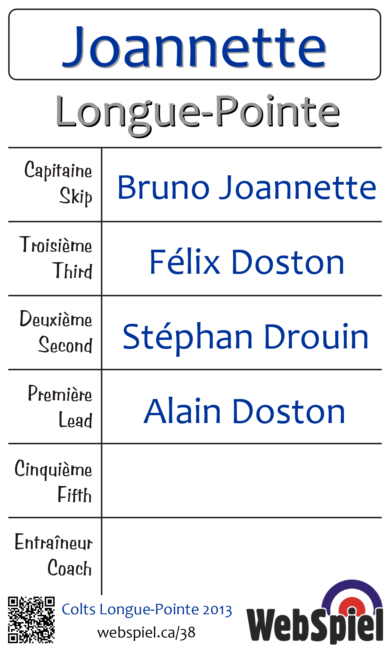 | Club | Longue-Pointe Club de curling Longue-Pointe 6150 Hochelaga, bâtisse 166 C.P. 4000, Station K Montréal, QC H1N 3R9 CANADA T: 514-254-3031 F: 514-254-8400 http://www.curlinglonguepointe.com 4 sheets |