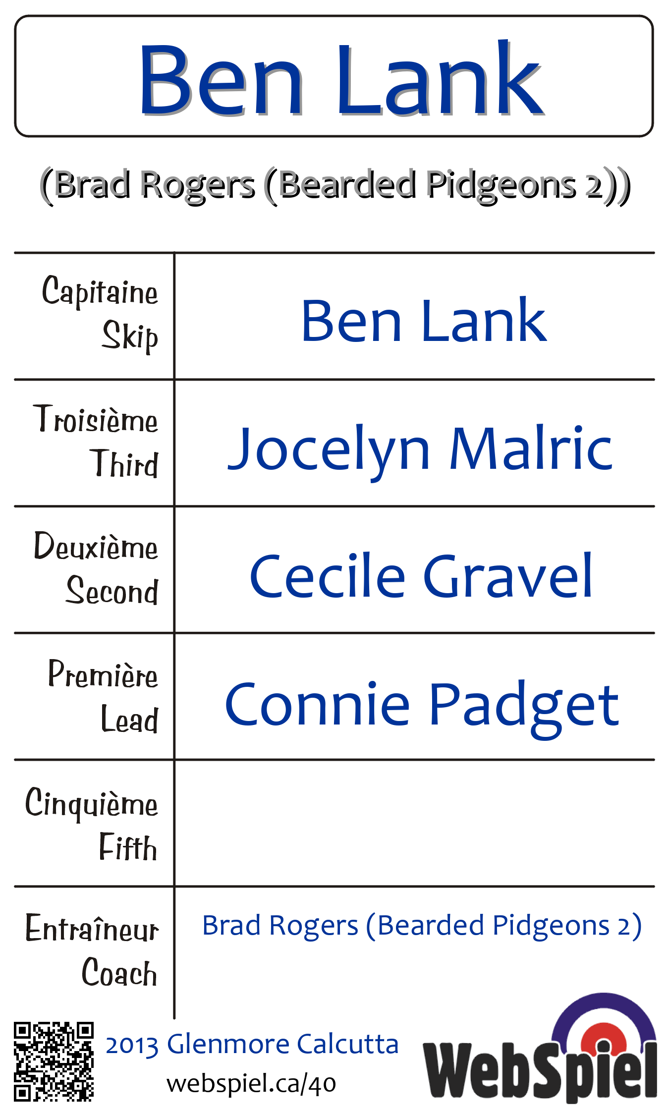 | Skip | Ben Lank |