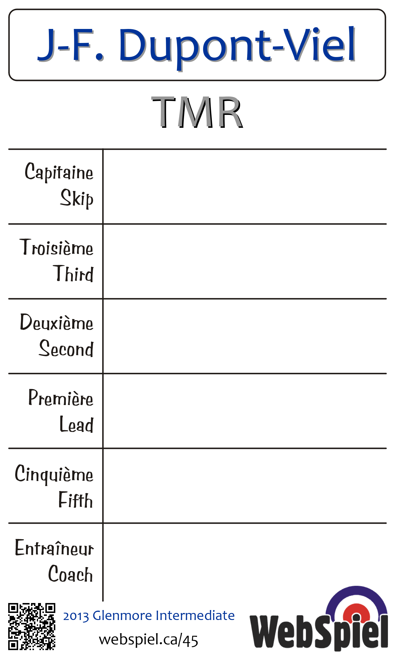| Club | TMR Town of Mount Royal Curling Club 5 avenue Montgomery Ville Mont-Royal, QC H3R 2B2 CANADA T: 514-733-7153 http://www.tmrcurlingclub.com/ 6 sheets |
