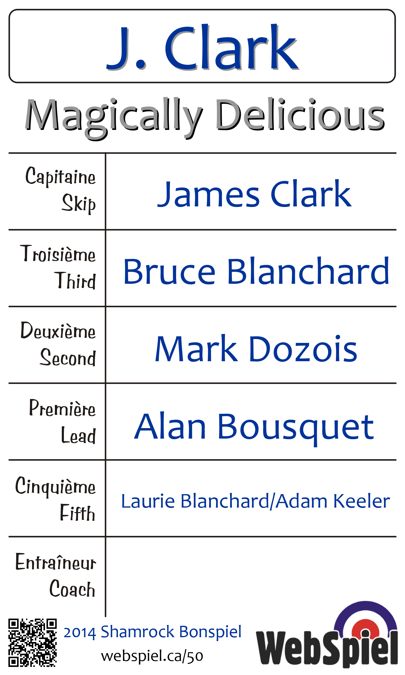 | Alternate | Laurie Blanchard/Adam Keeler |