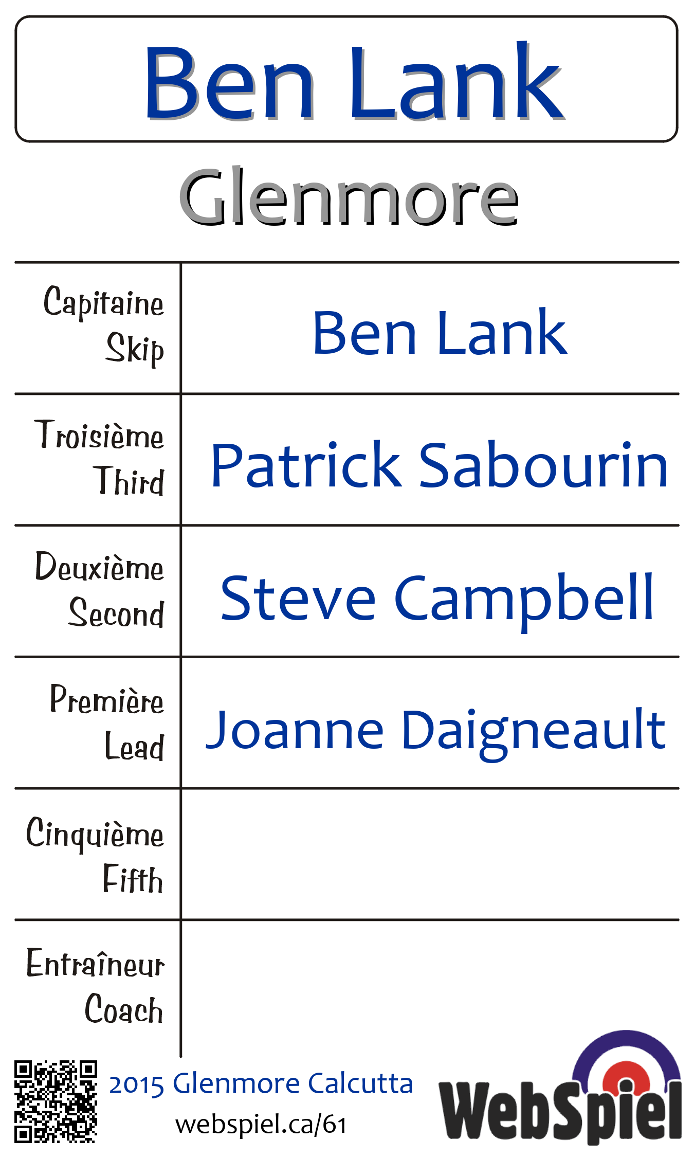 | Skip | Ben Lank |