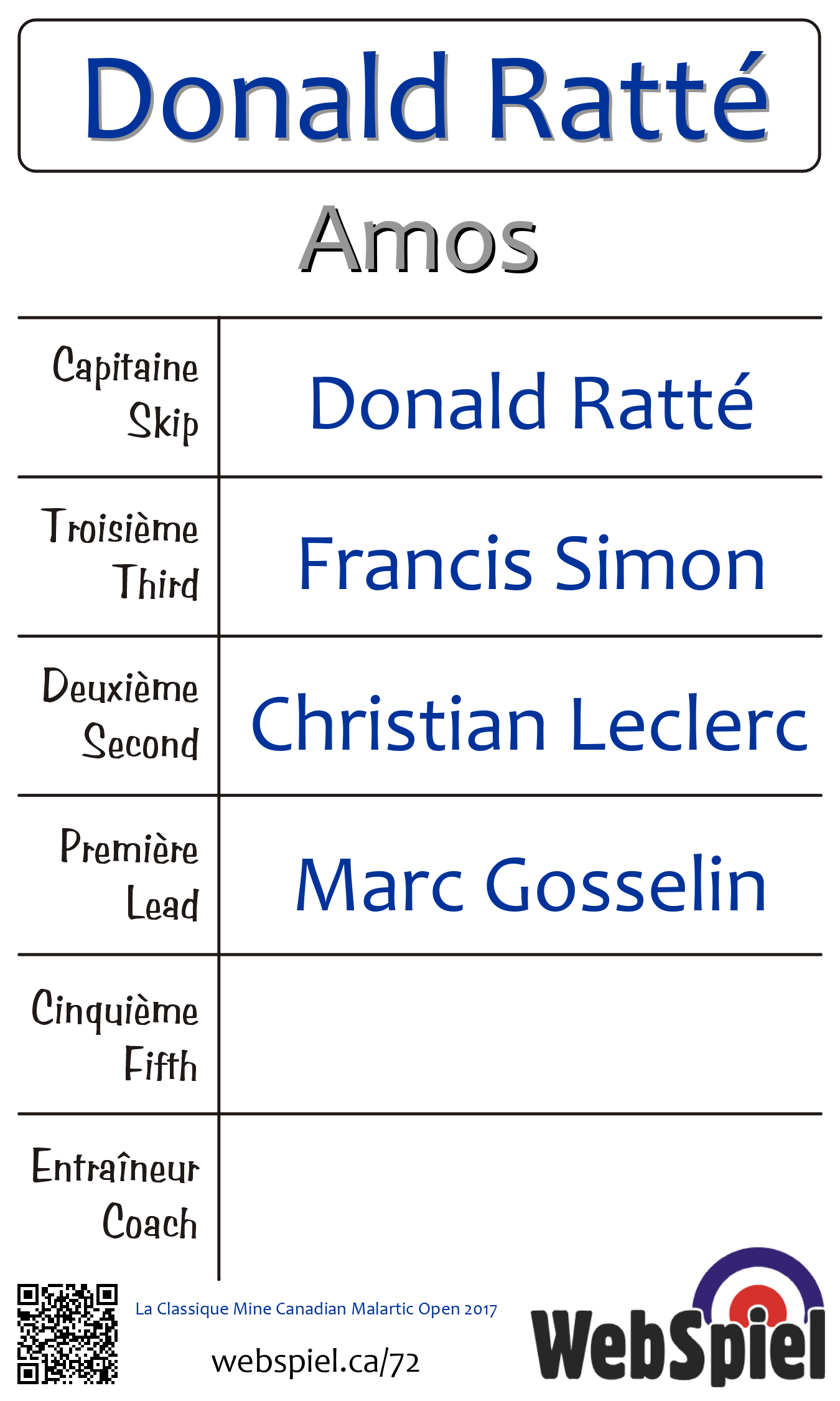 | Club | Amos Club de curling d'Amos 182 10e Avenue Est Amos, QC J9T 1H9 CANADA T: 819-732-6272 F: 819-732-1617 http://www.clubcurlingamos.com |