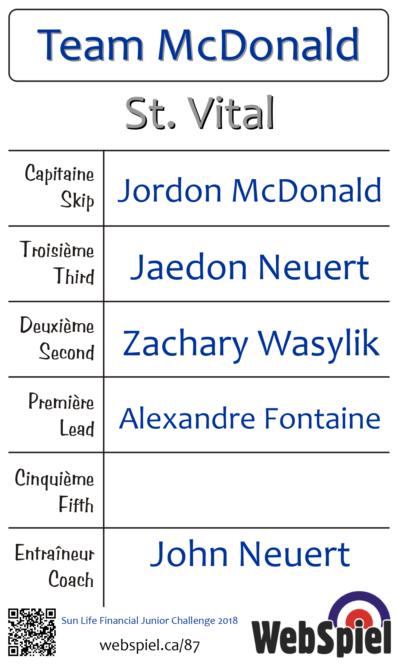 | Skip | Jordon McDonald |