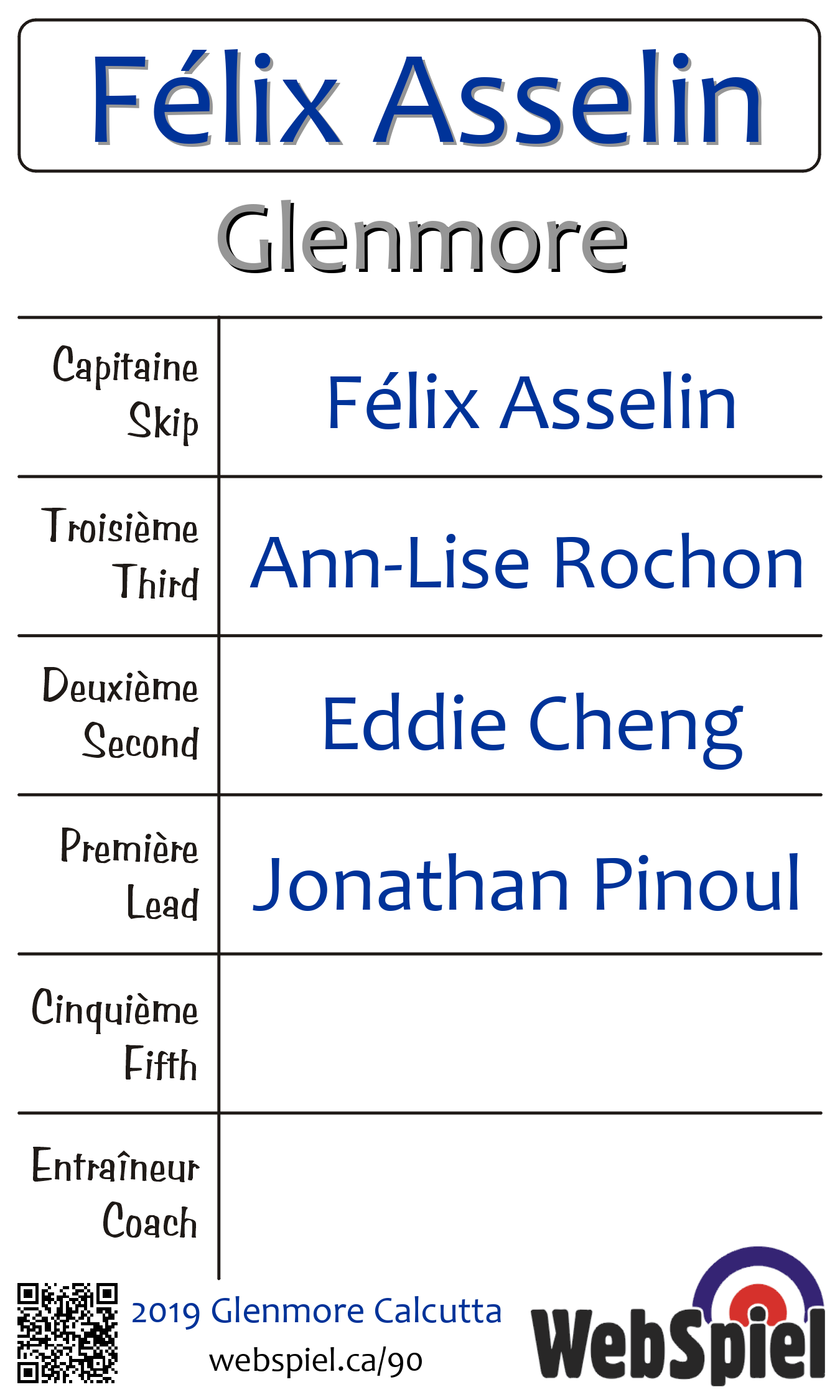 C FinalSaturday, February 9th, 2019, at 3:00pm EST Glenmore Curling Club, Sheet 211 | |||||||||