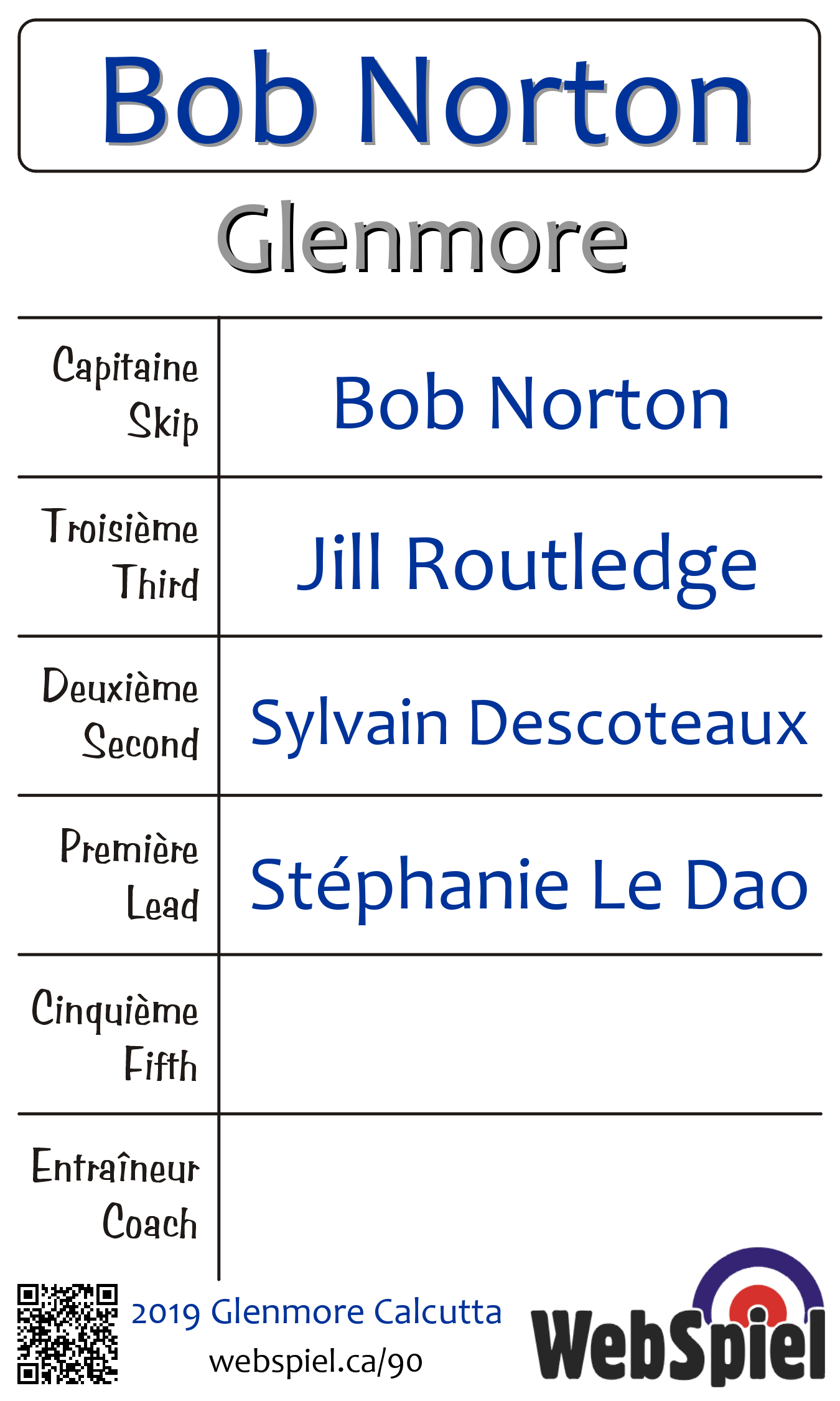 B FinalSaturday, February 9th, 2019, at 3:00pm EST Glenmore Curling Club, Sheet 212 | |||||||||