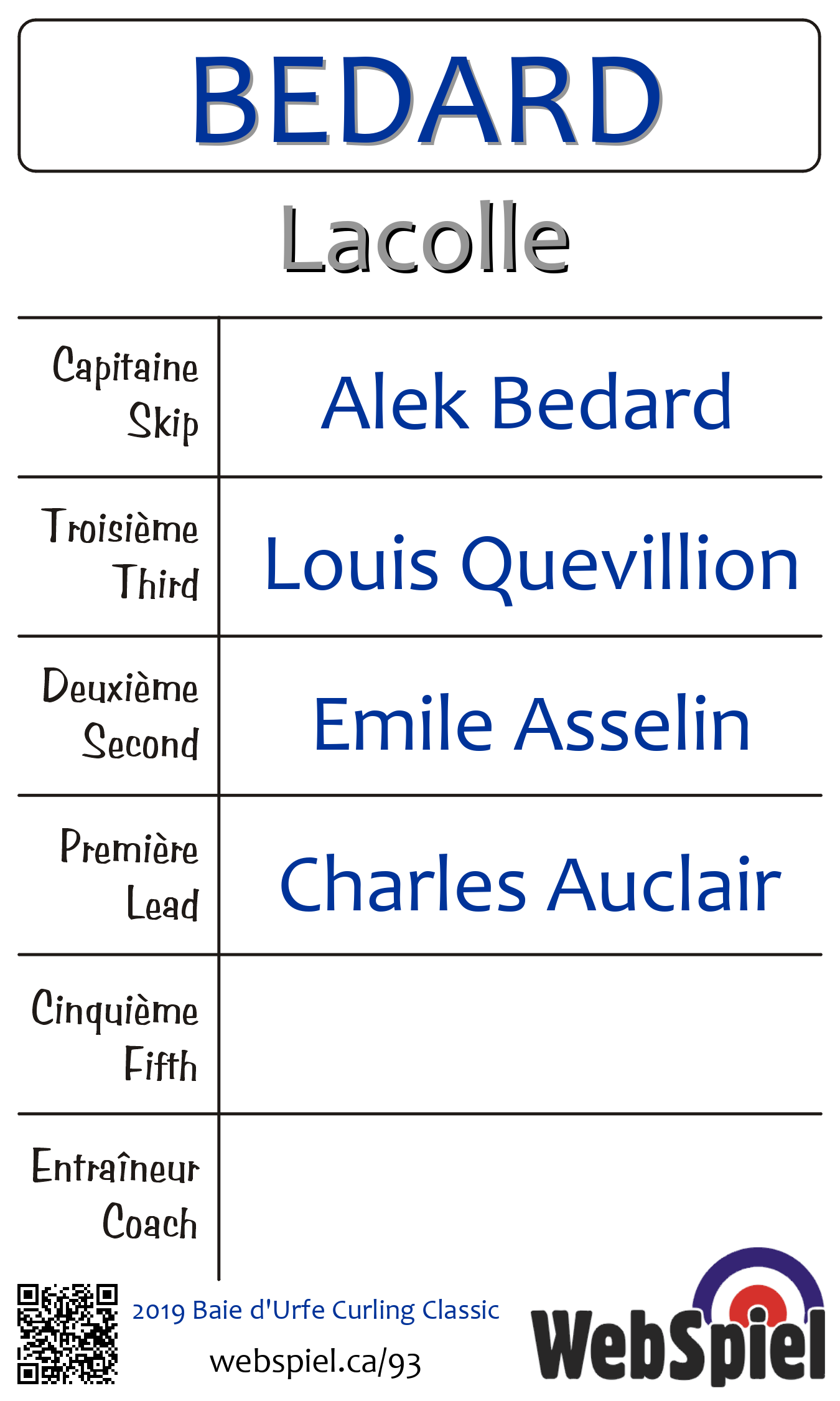 Baie d'Urfé Curling Club, Sheet 193, Winner › F06, Loser › OUT