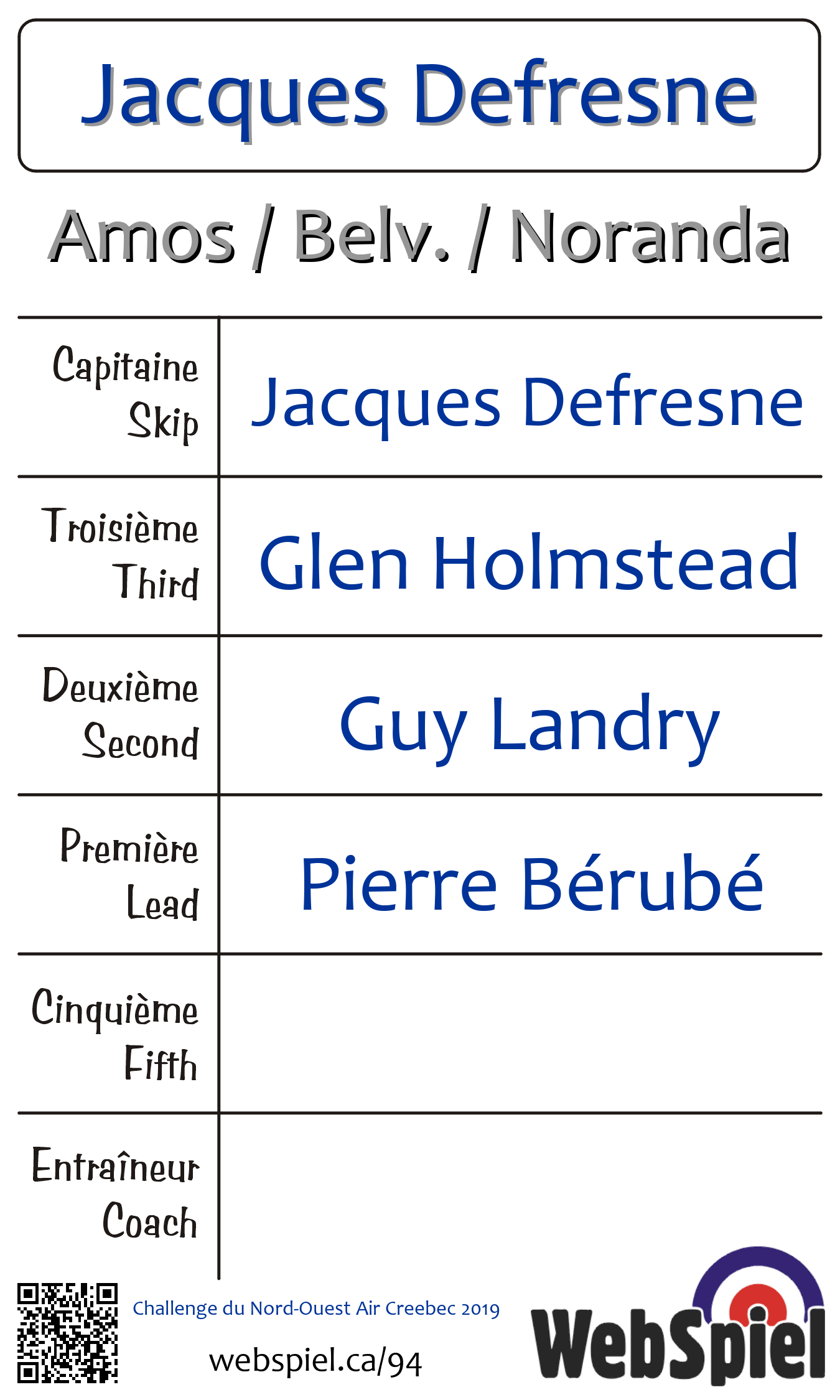 Completed. Challenge du Nord-Ouest Air Creebec 2019 · Draw P02