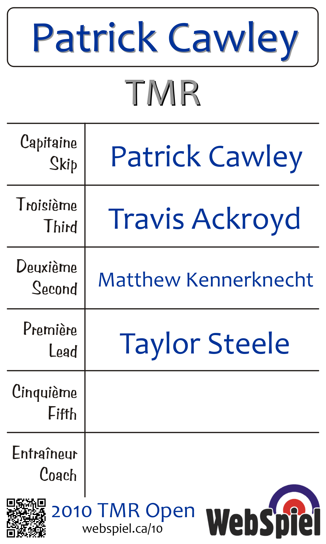 Complété. 2010 TMR Open · Draw D04