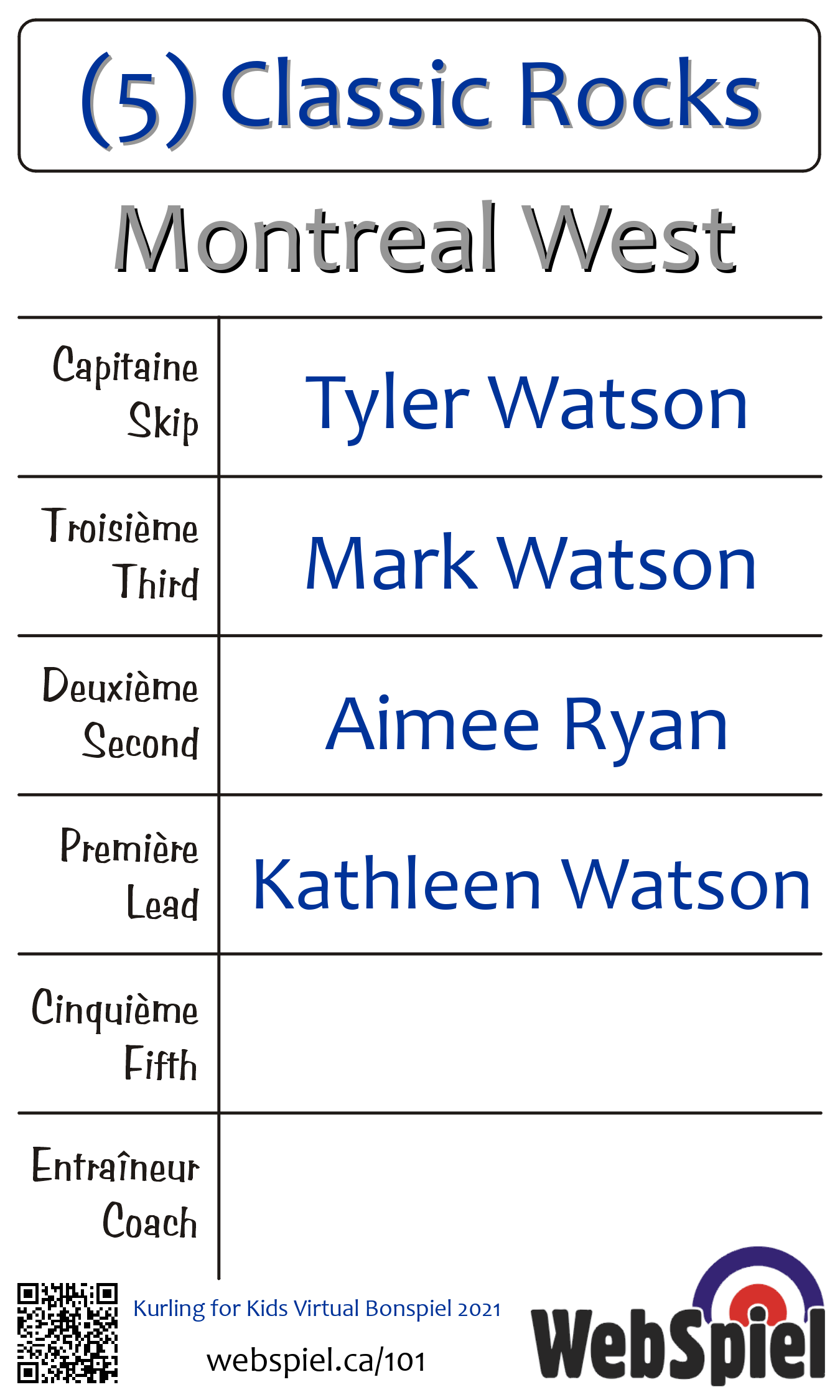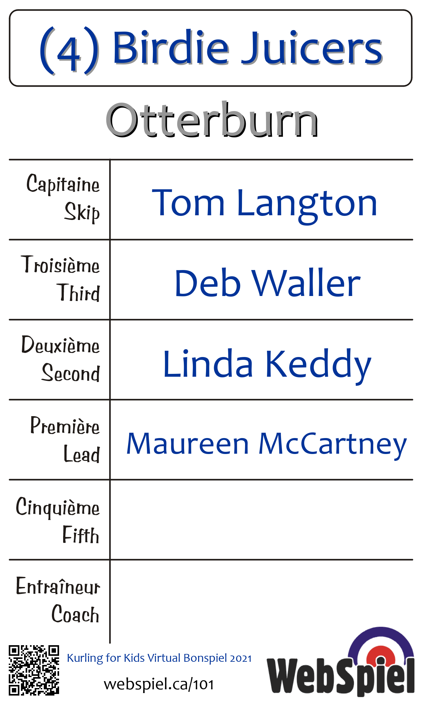 | 1 | (1) 4 Kids Kurling | ||