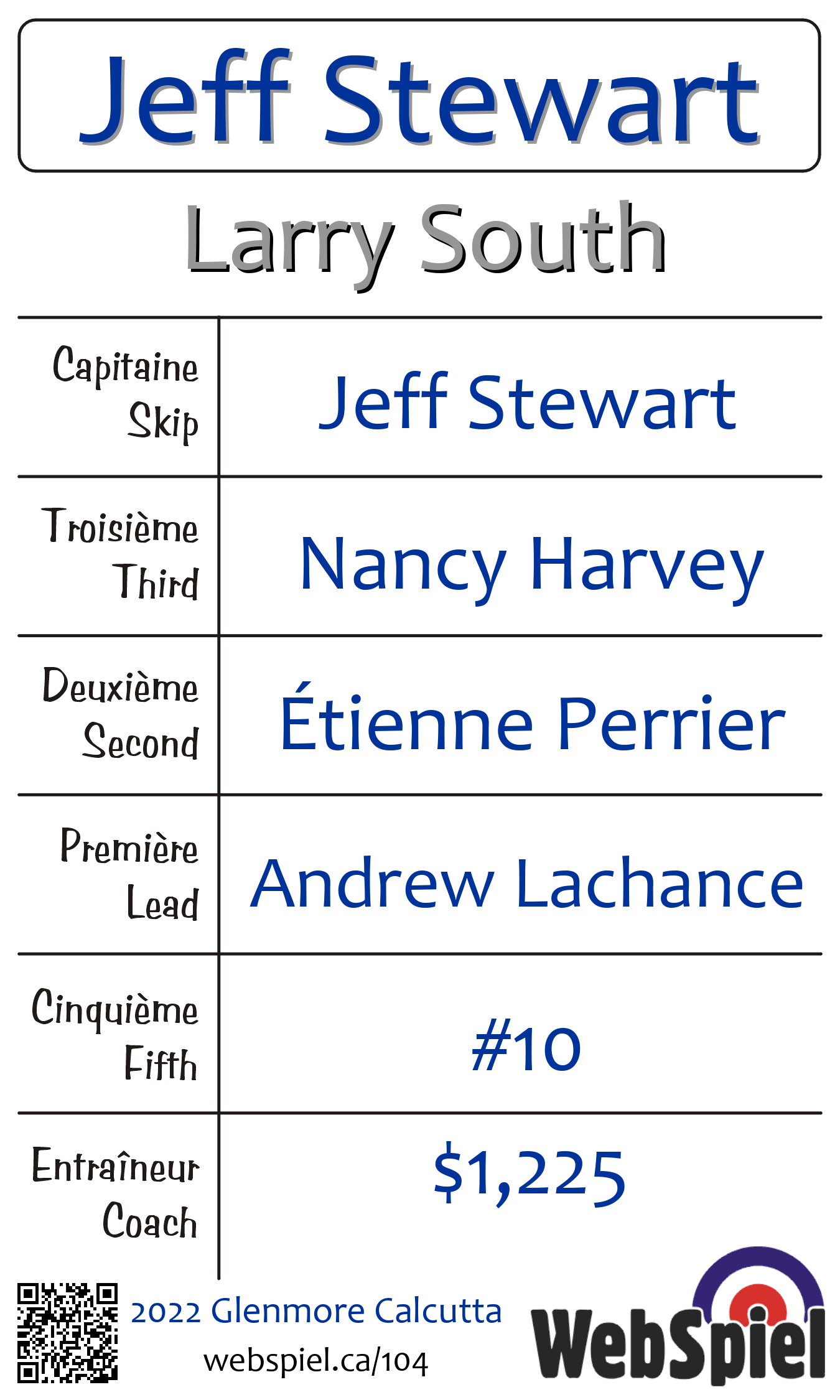 | Équipe | 1 - Jeff Stewart |