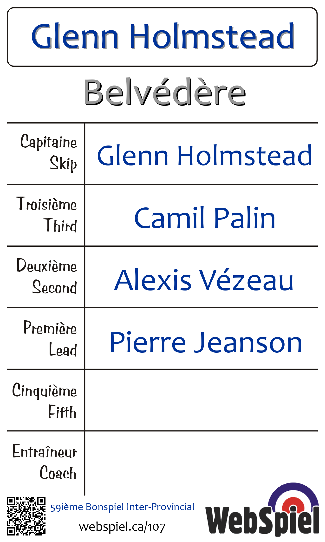 Samedi le 30 avril 2022, à 16h00 EDT Club de curling d'Amos, Glace 3 · C, Gagnant › B25, Perdant › Éliminé | |||||||||