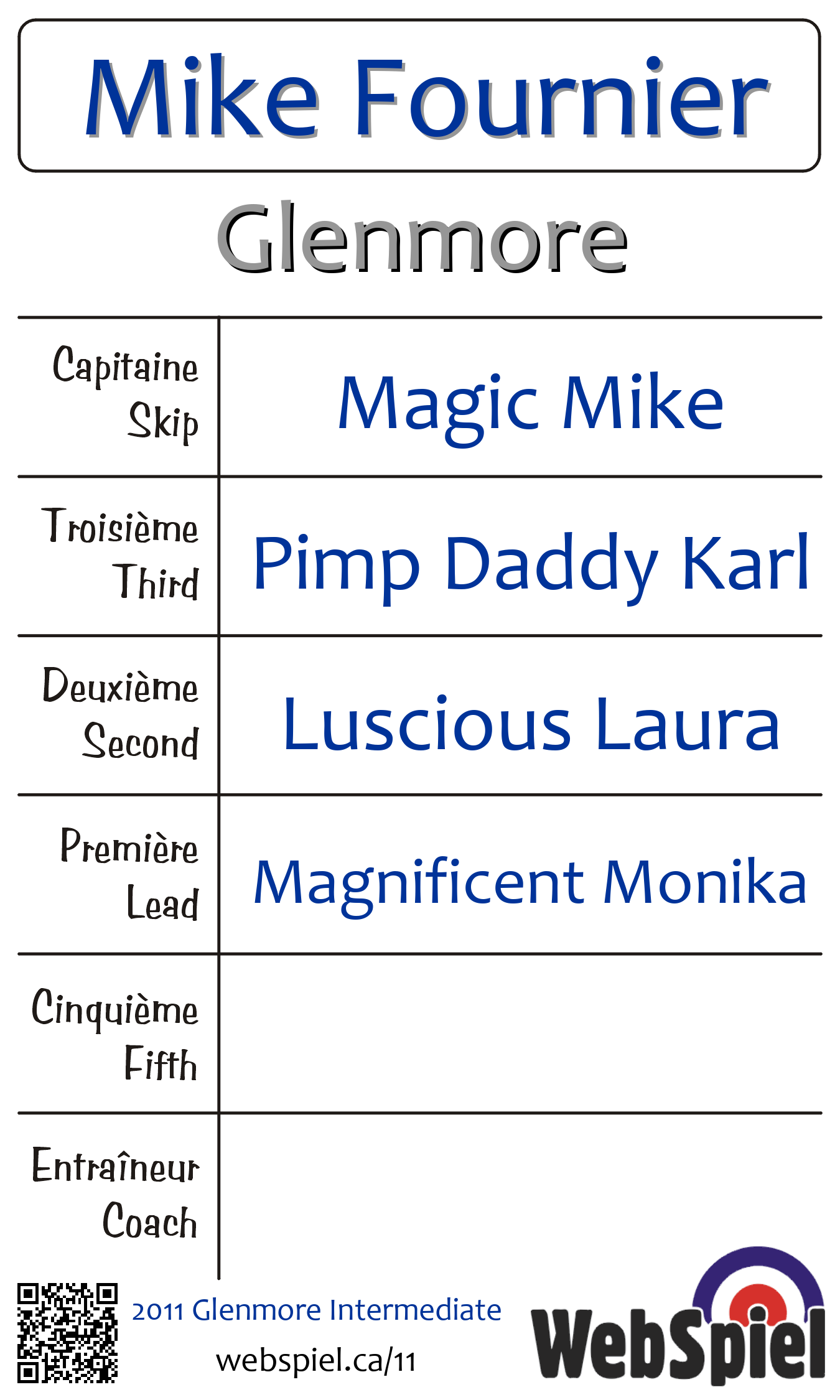 Vendredi le 22 avril 2011, à 15h30 EDT Glenmore Curling Club, Glace 212, Gagnant › C11, Perdant › D03 | |||||||||