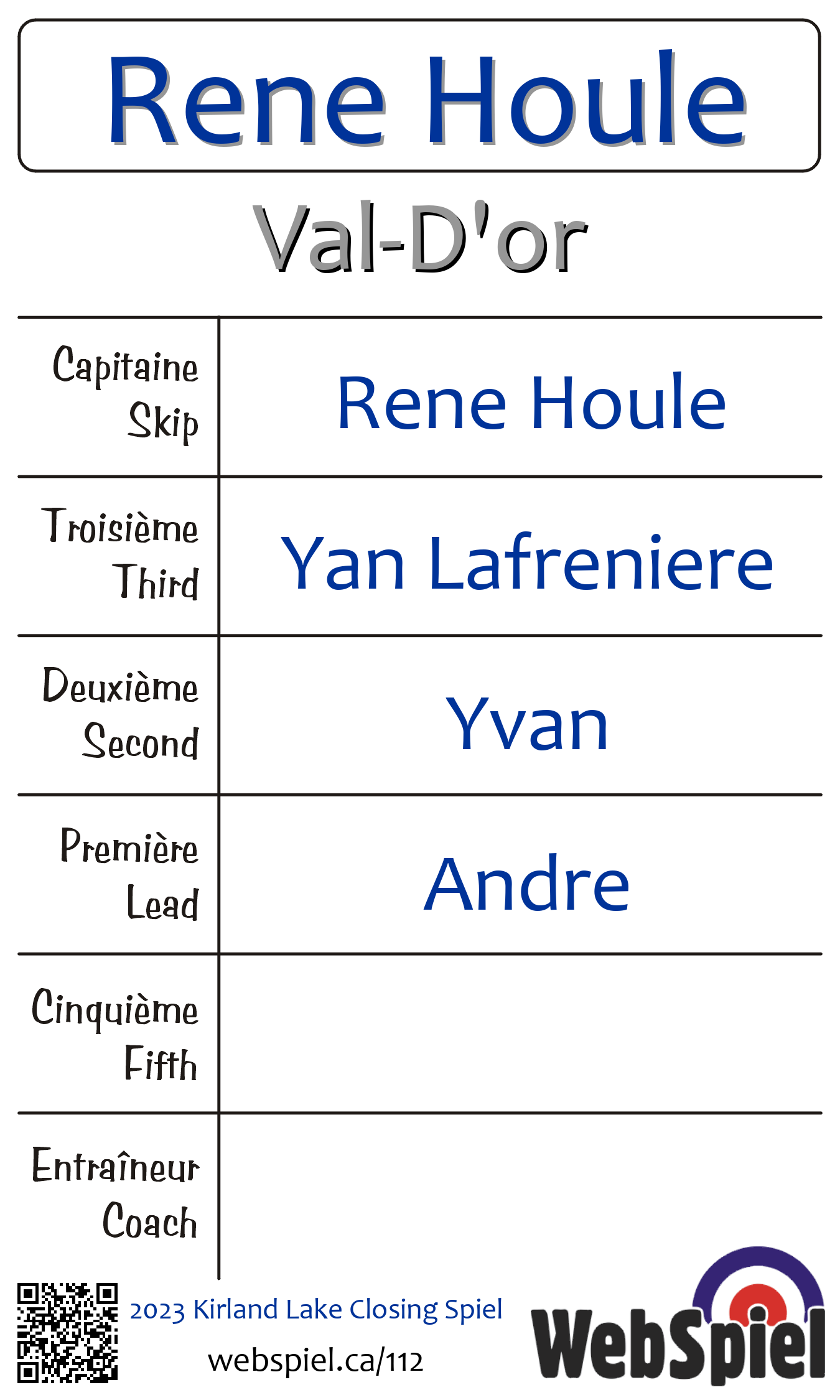 Finale BDimanche le 16 avril 2023, à 13h00 EDT Kirkland Lake Curling Club, Glace 5 | |||||||||