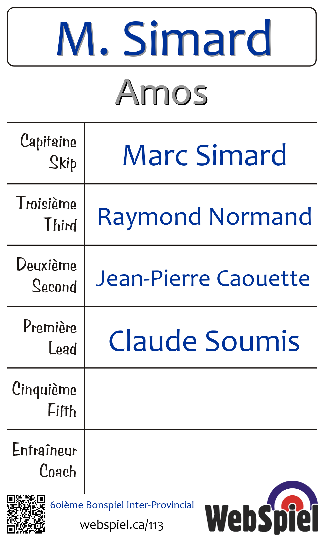 Club de curling d'Amos, Glace 1 · A, Gagnant › D05, Perdant › Éliminé