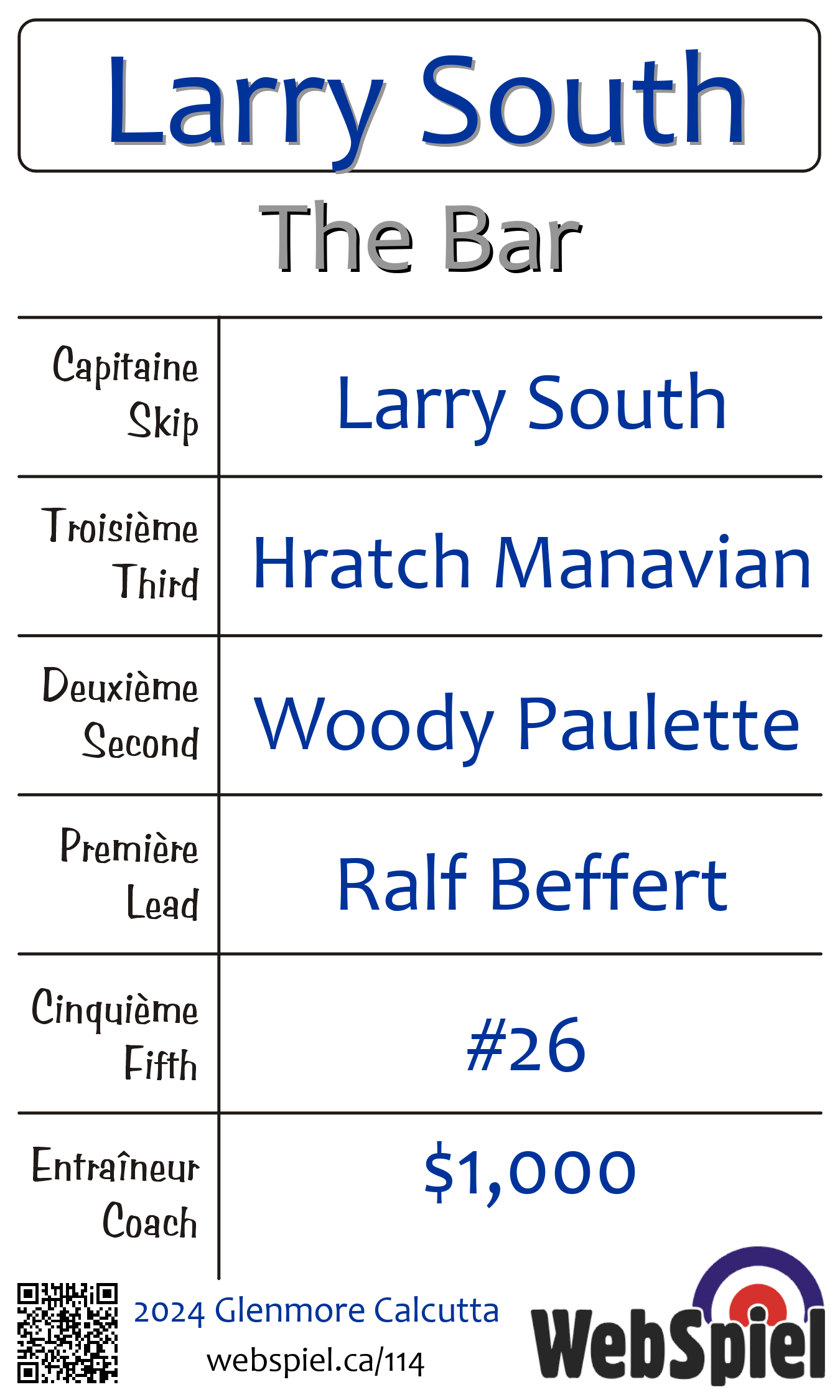 Complété. 2024 Glenmore Calcutta · Draw B02