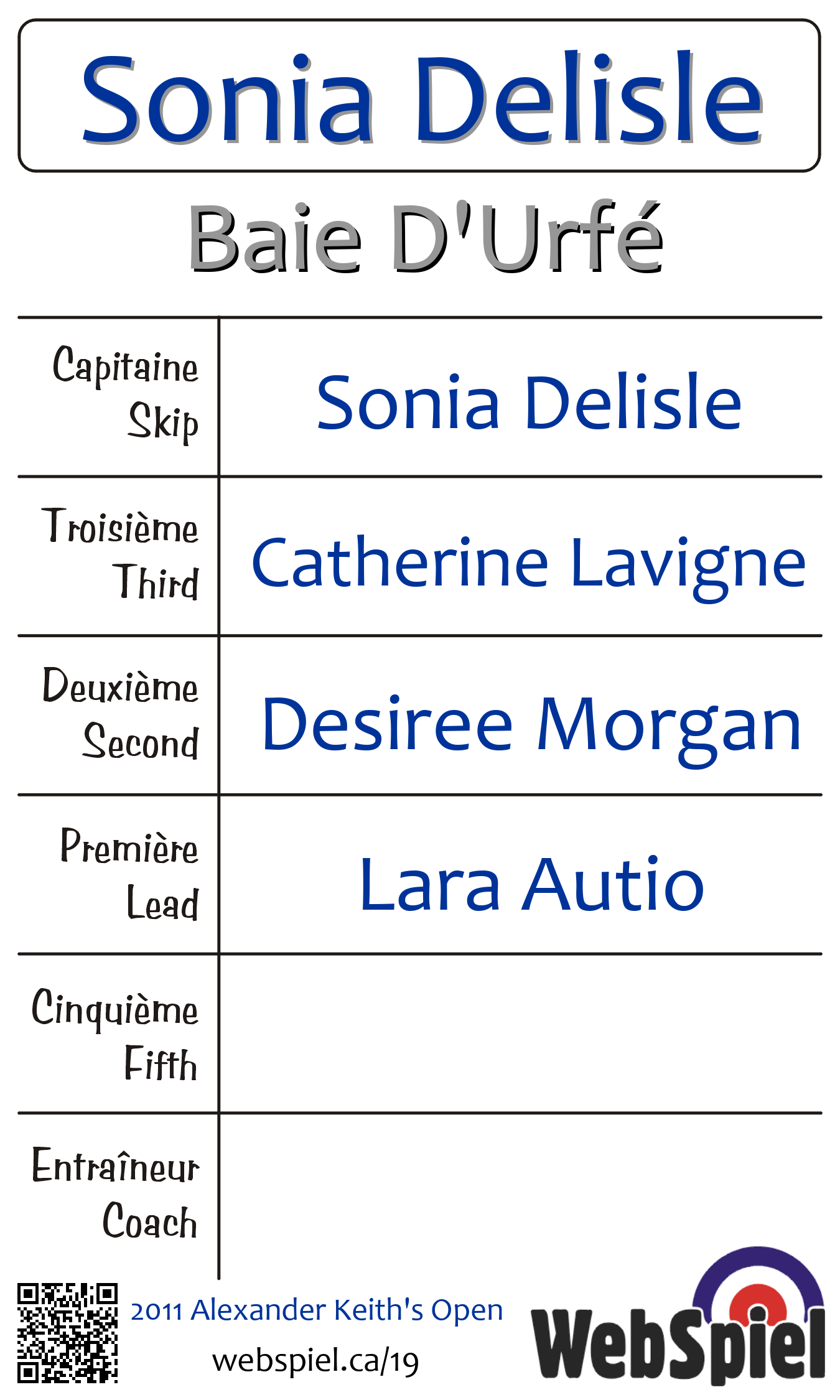 | Équipe | 1 - Sonia Delisle |