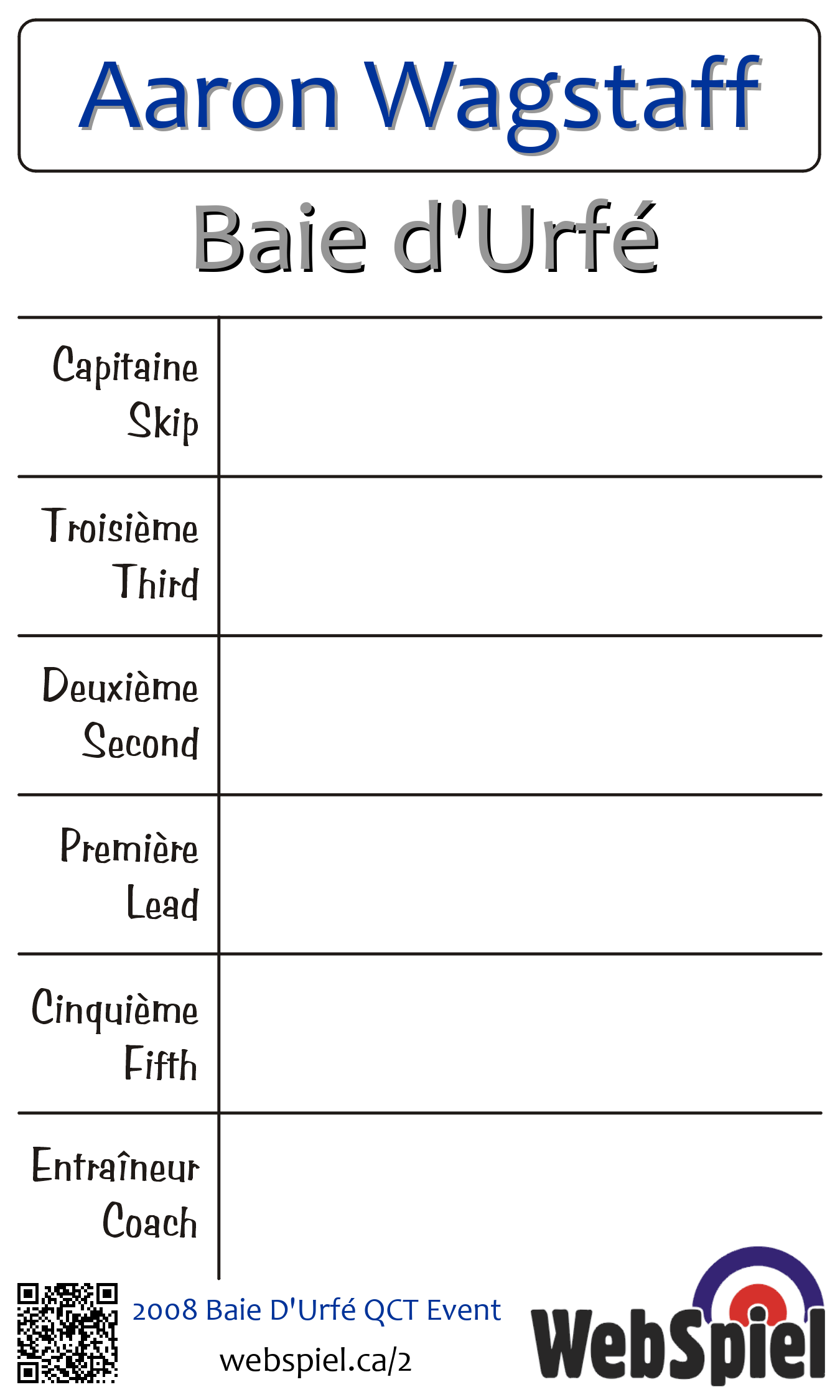 Samedi le 6 décembre 2008, à 10h00 EST Baie d'Urfé Curling Club, Glace 191, Gagnant › C14, Perdant › Éliminé | |||||||||