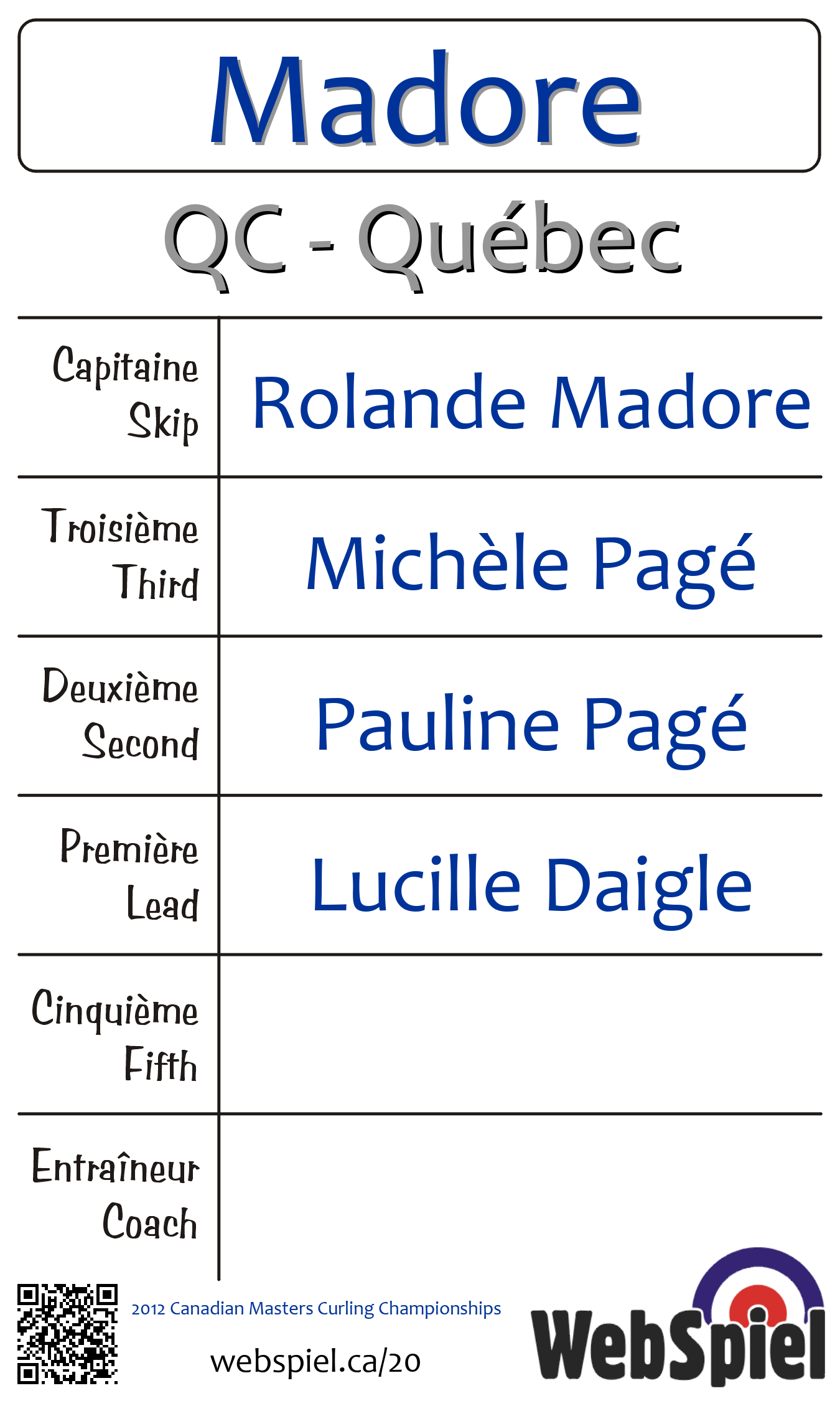 Lundi le 26 mars 2012, à 20h00 EDT Club de curling Boucherville, Glace 383 · F | ||||||||||