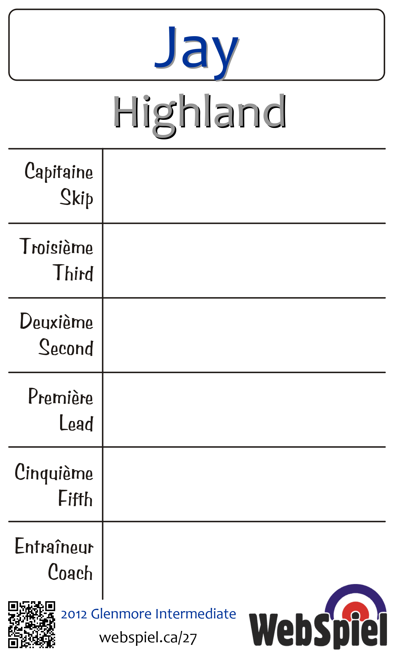 Complété. Intermediaire Glenmore 2012 · Draw A25