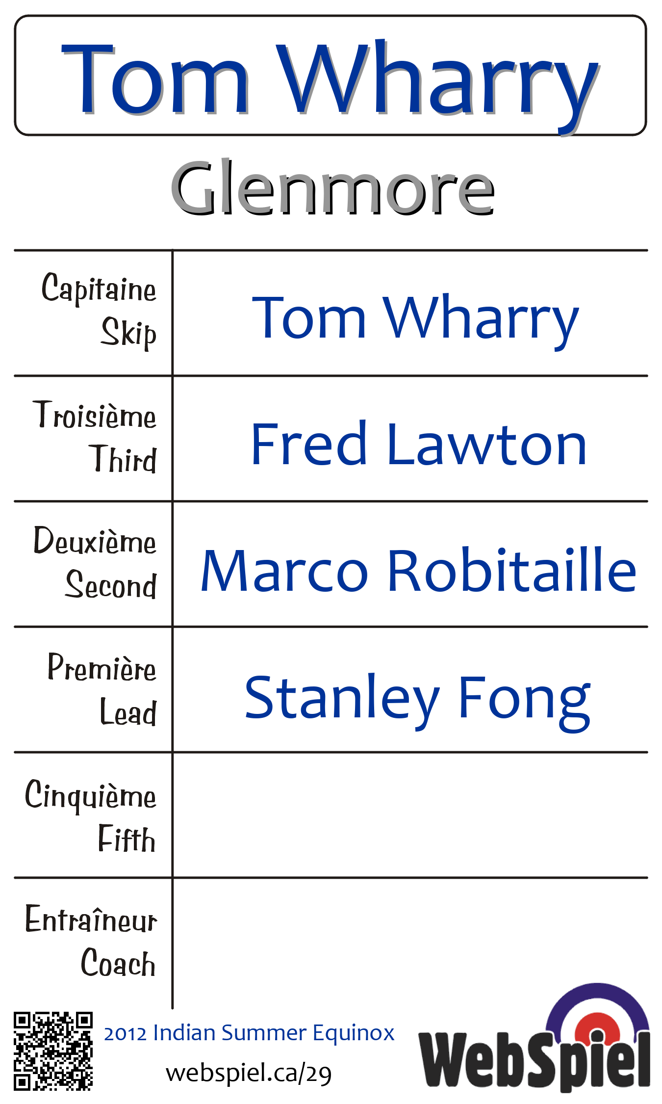 | Équipe | 4 - Tom Wharry |