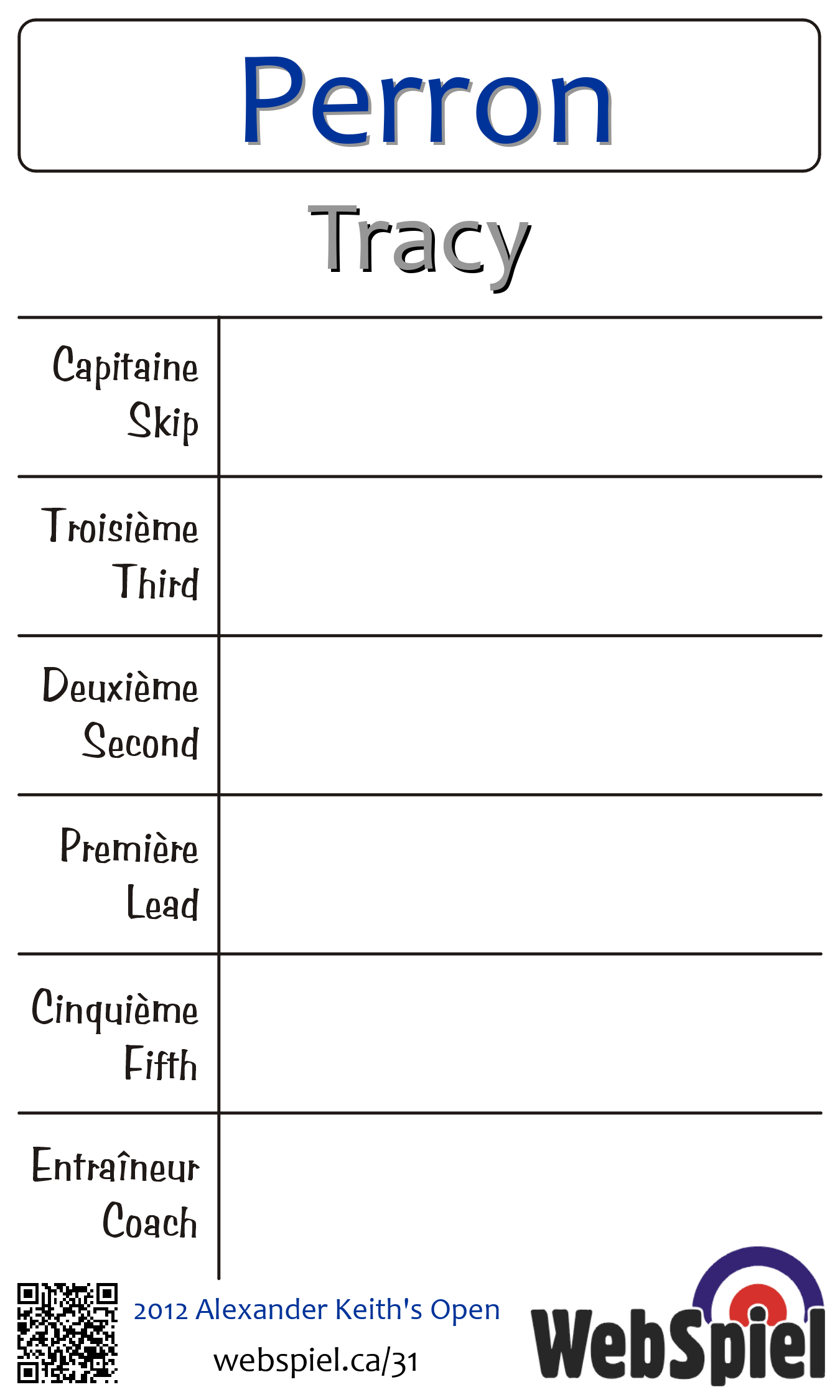 | Club | Tracy Club de curling Aurèle Racine 3010 place des loisirs Sorel-Tracy, QC J3R 5S5 CANADA T: 450-742-4100 F: 450-746-8894 |