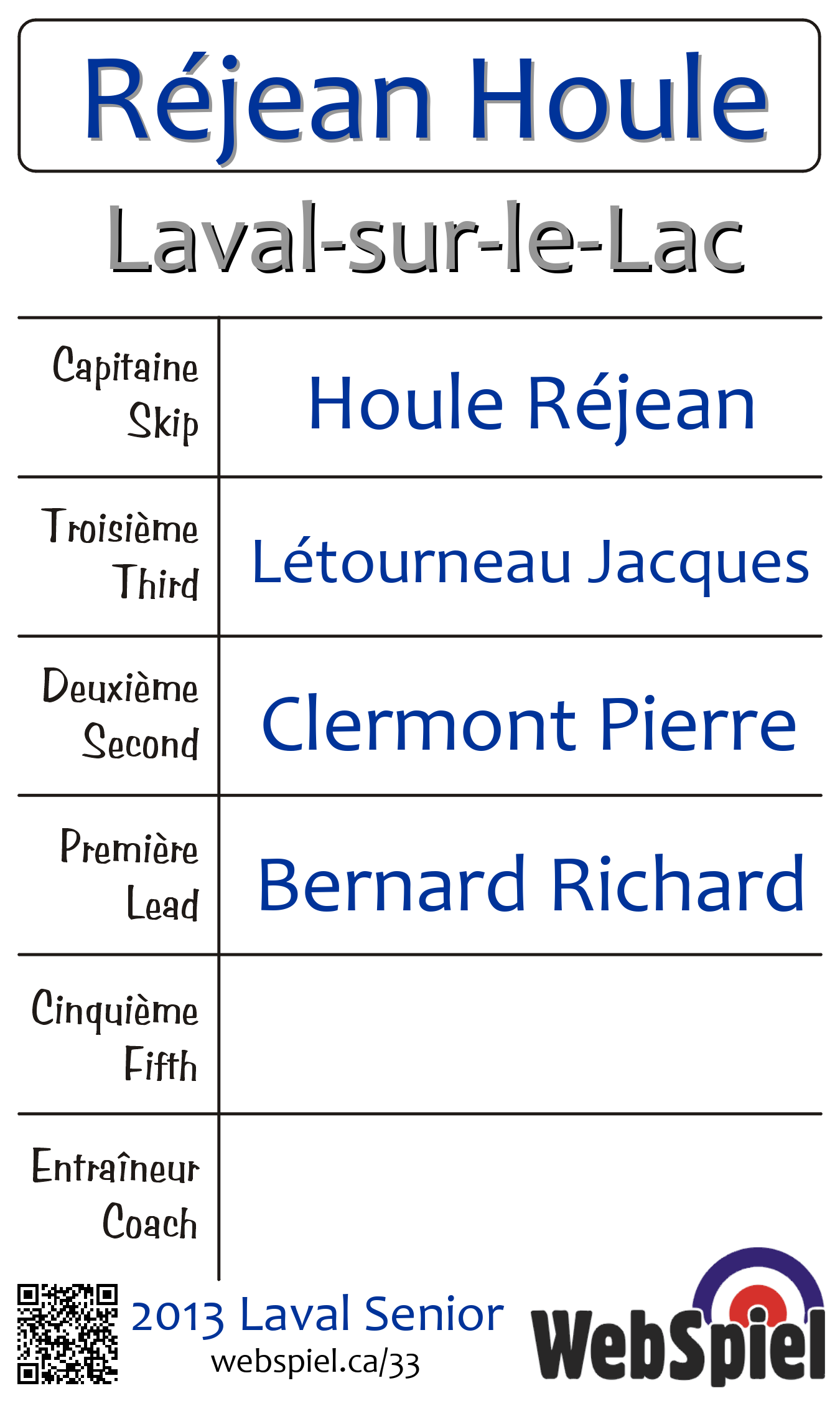 | Club | Laval-sur-le-Lac Club de curling Laval-sur-le-Lac 10 rue les Pins Laval-sur-le-Lac, QC H7R 1C7 CANADA T: 450-627-4791 F: 450-627-7511 http://www.curlinglaval.ca 3 glaces |