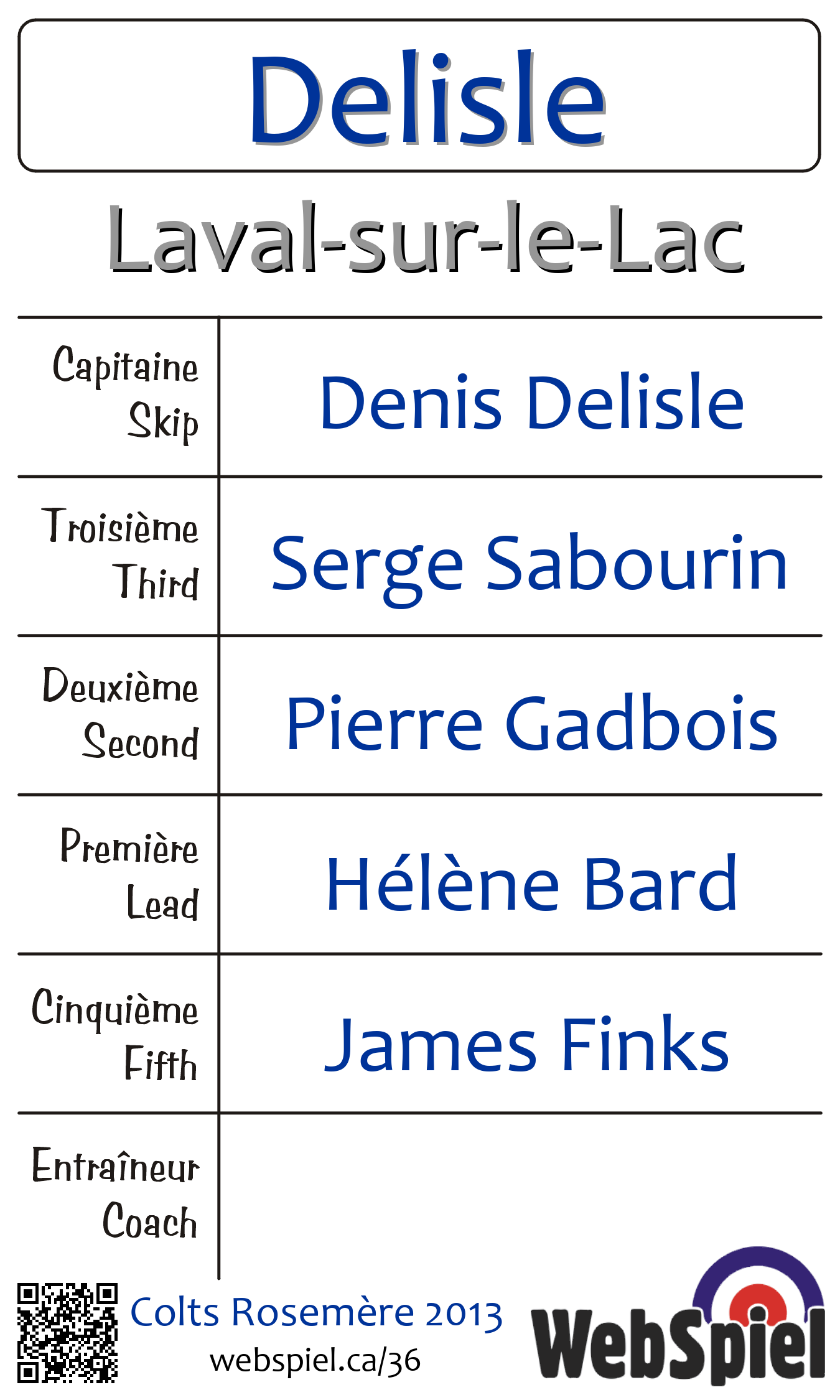 | Club | Laval-sur-le-Lac Club de curling Laval-sur-le-Lac 10 rue les Pins Laval-sur-le-Lac, QC H7R 1C7 CANADA T: 450-627-4791 F: 450-627-7511 http://www.curlinglaval.ca 3 glaces |