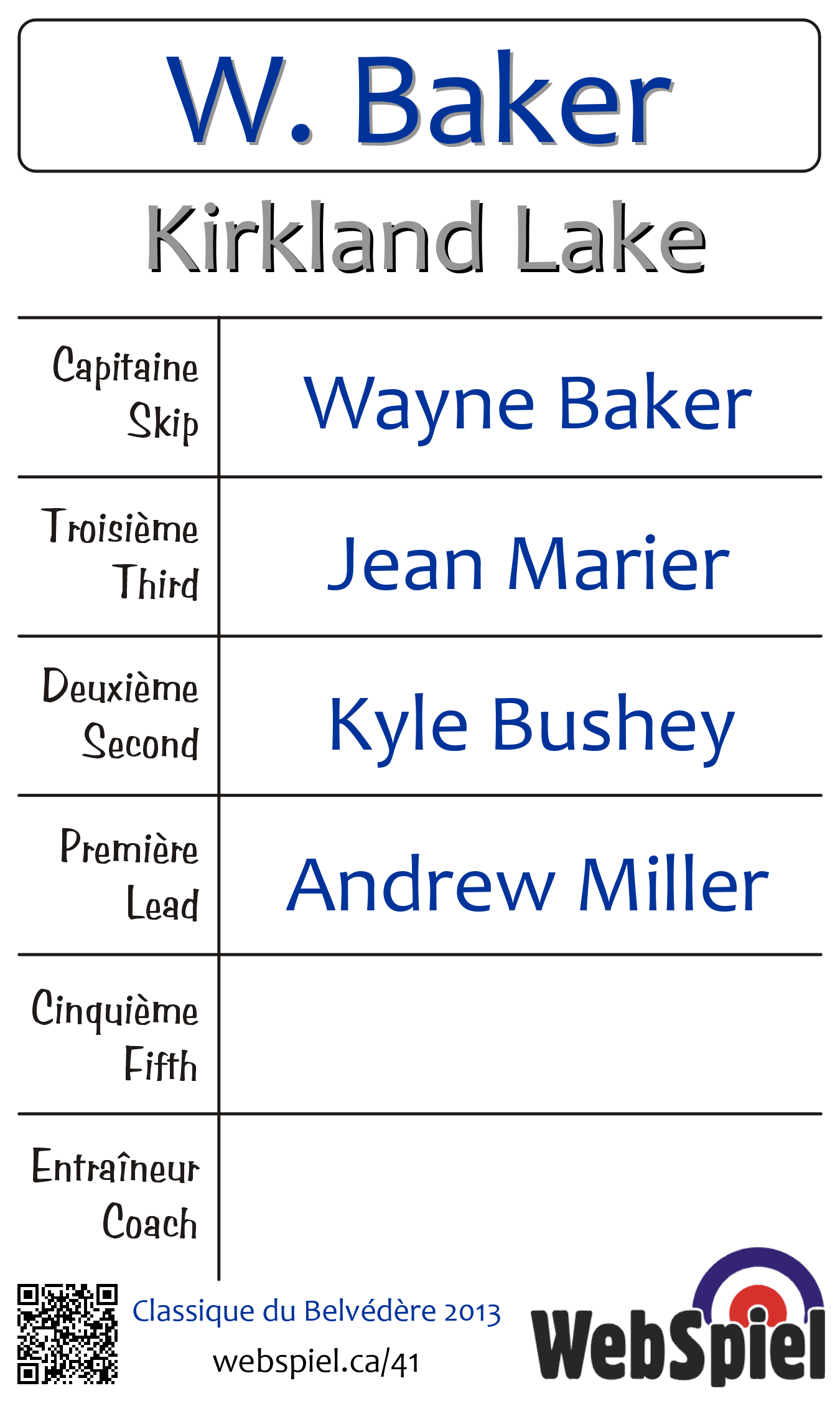 Samedi le 9 février 2013, à 15h30 EST Club de curling du Belvédère, Glace 2 · B, Gagnant › A37, Perdant › Éliminé | |||||||||