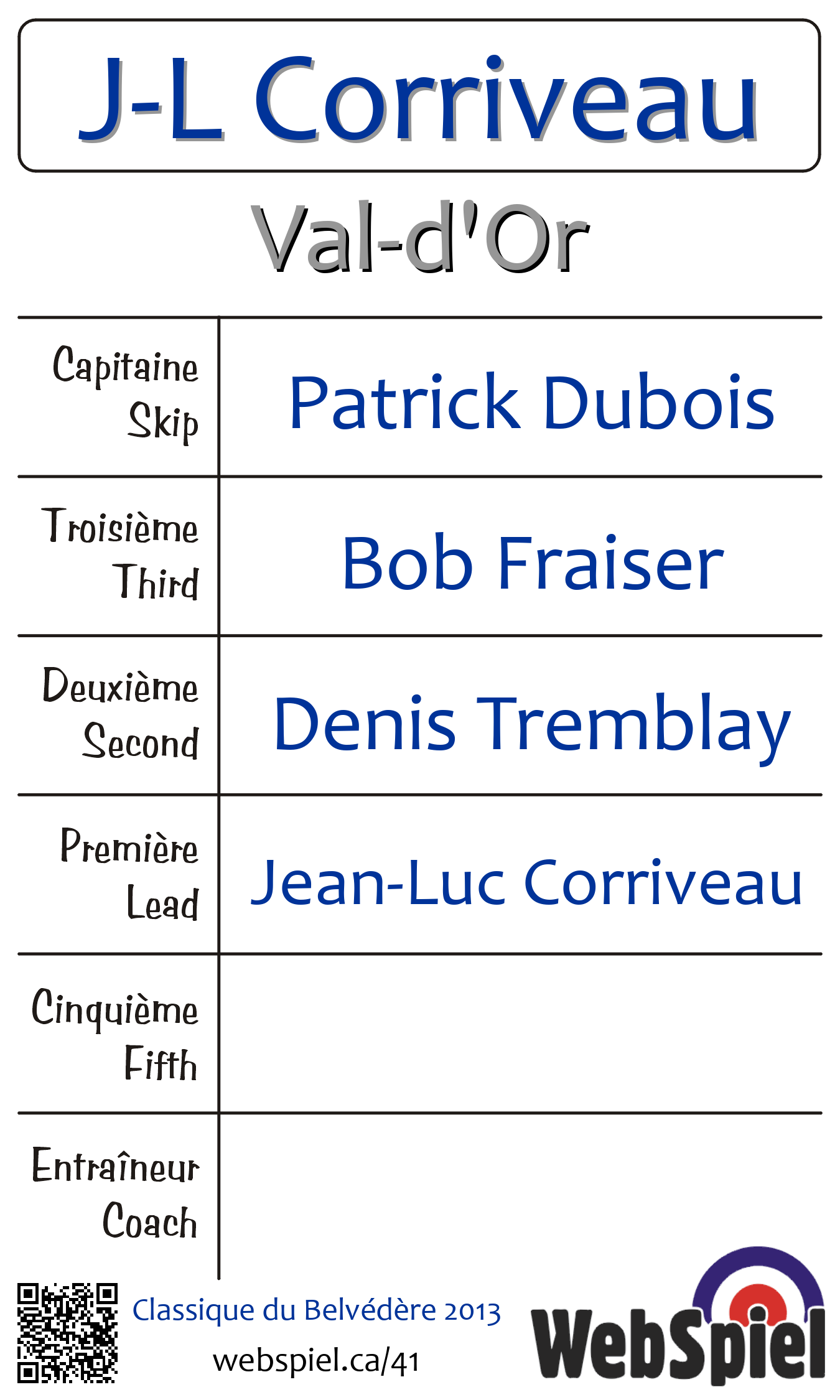 Club de curling du Belvédère, Glace 1 · A, Gagnant › C13, Perdant › D05