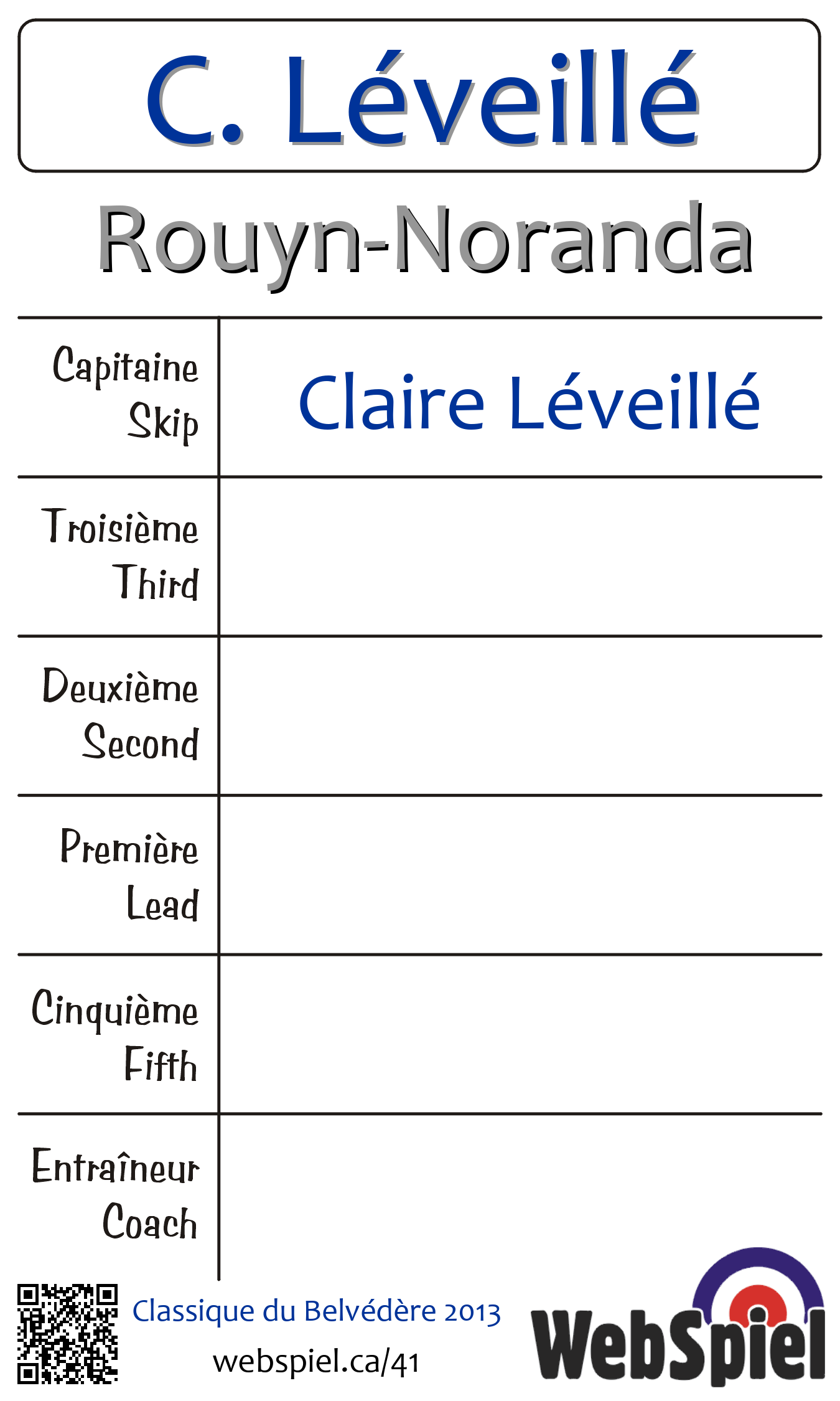 Vendredi le 8 février 2013, à 20h00 EST Club de curling du Belvédère, Glace 2 · B | |||||||||