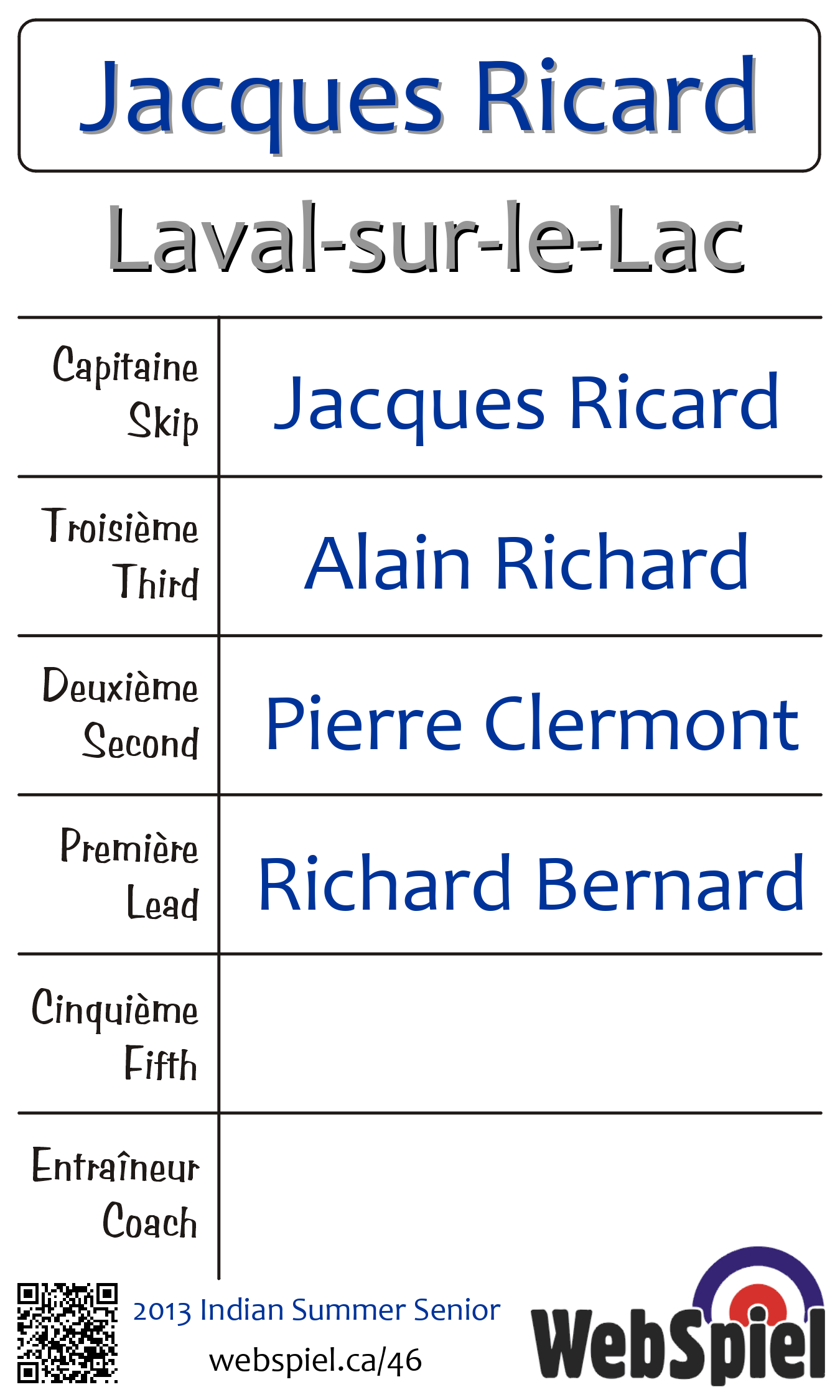 | Club | Laval-sur-le-Lac Club de curling Laval-sur-le-Lac 10 rue les Pins Laval-sur-le-Lac, QC H7R 1C7 CANADA T: 450-627-4791 F: 450-627-7511 http://www.curlinglaval.ca 3 glaces |