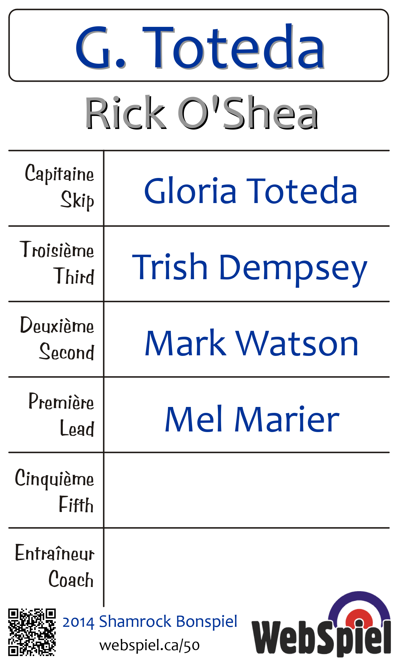 | Club | Rick O'Shea Montreal West Curling Club 17 Ainslie Road Montréal ouest, QC H4X 1K4 CANADA T: 514-486-5831 http://mtlwestcurl.org/ 4 glaces |