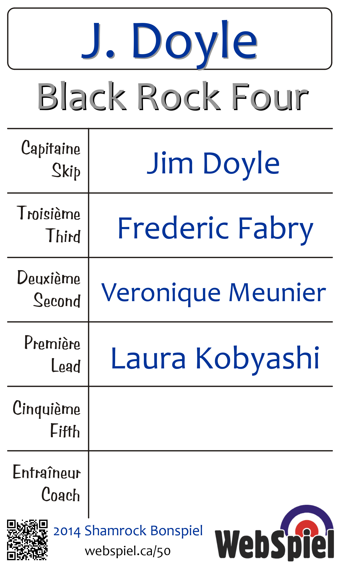 | Club | Black Rock Four Montreal West Curling Club 17 Ainslie Road Montréal ouest, QC H4X 1K4 CANADA T: 514-486-5831 http://mtlwestcurl.org/ 4 glaces |
