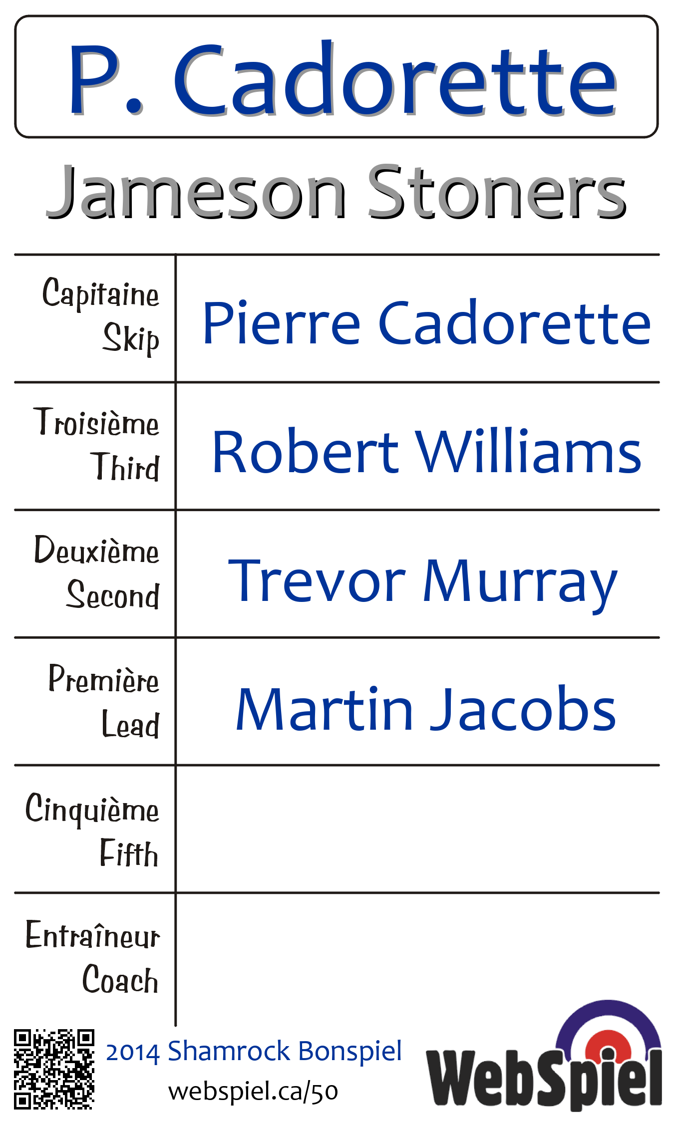 | Club | Jameson Stoners Montreal West Curling Club 17 Ainslie Road Montréal ouest, QC H4X 1K4 CANADA T: 514-486-5831 http://mtlwestcurl.org/ 4 glaces |