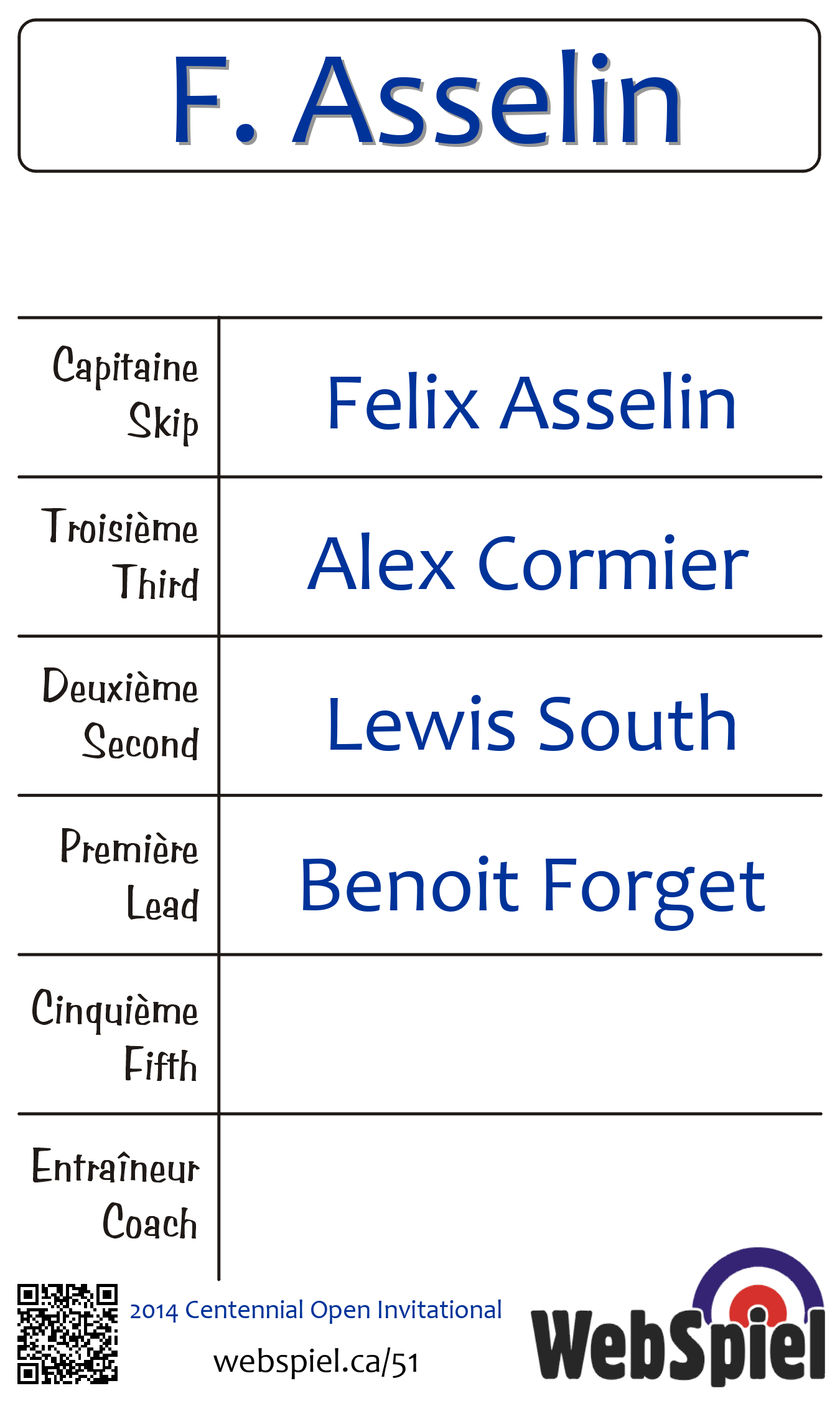| Équipe | 10 - F. Asselin |
