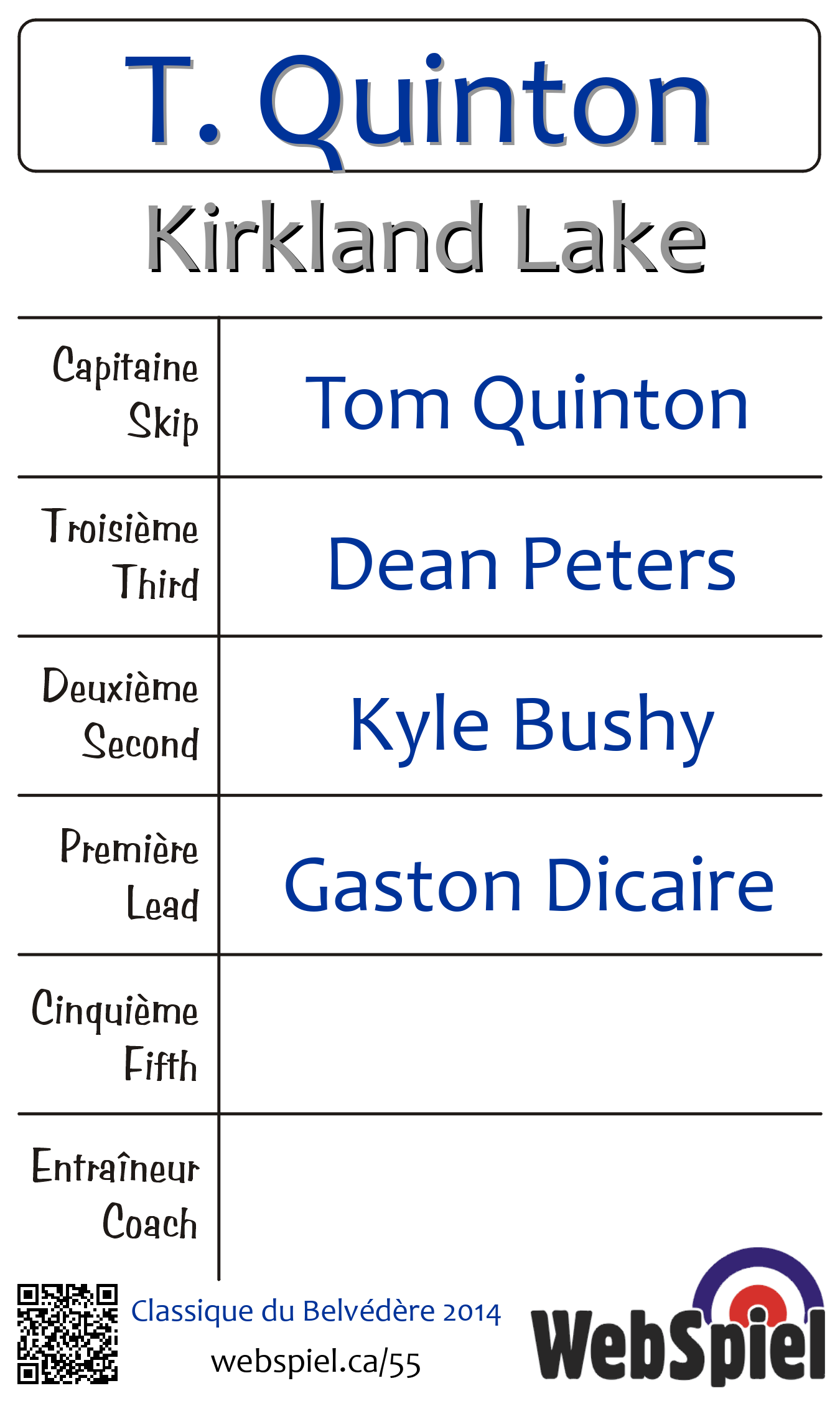 Vendredi le 14 février 2014, à 21h45 EST Club de curling du Belvédère, Glace 4 · D, Gagnant › A21, Perdant › C03 | |||||||||