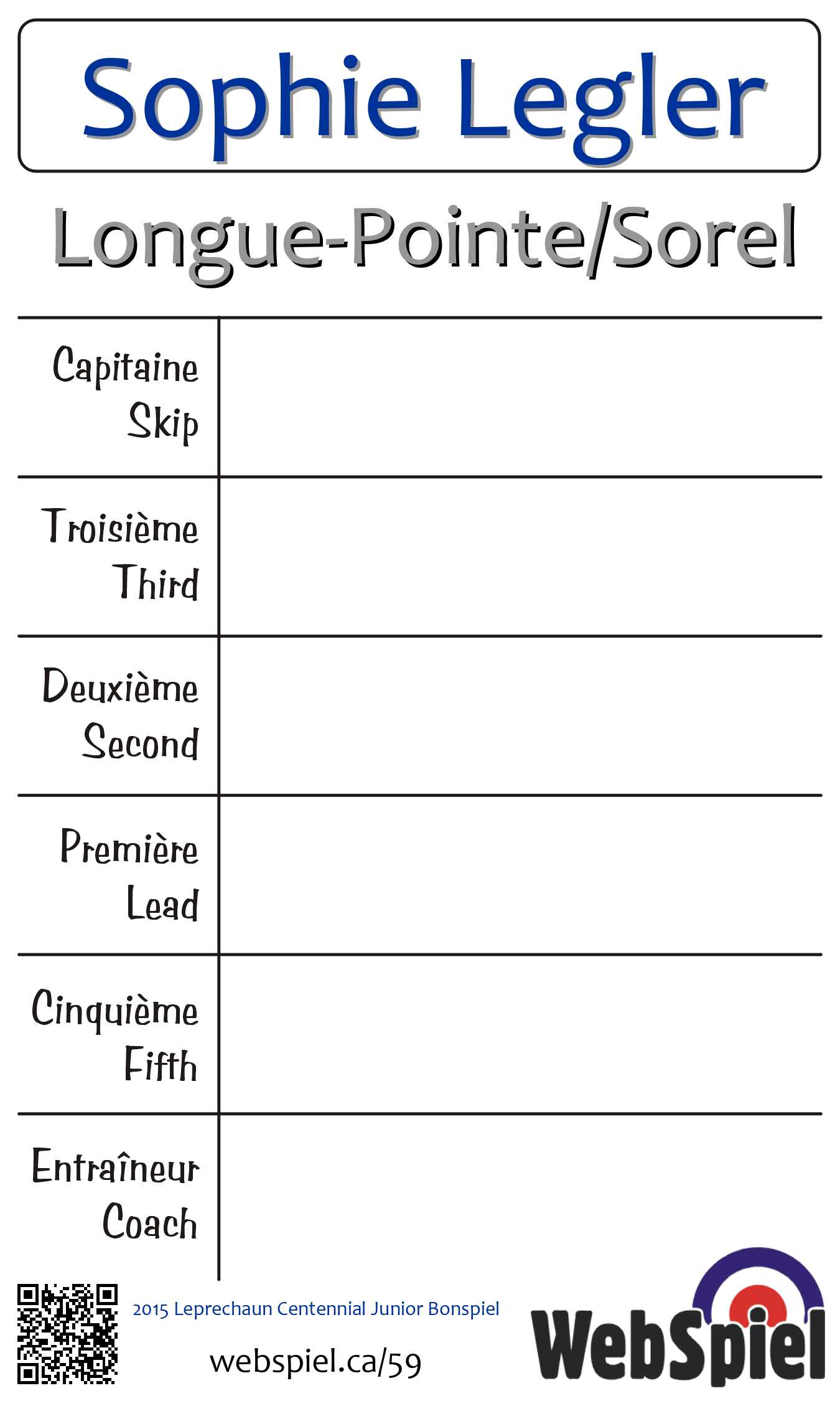 Girl's FinaleDimanche le 8 février 2015, à 12h30 EST Montreal West Curling Club, Glace 72 | |||||||||